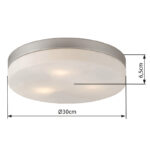 Jednostavna i diskretna je ova plafonska lampa iz Opal serije sa ivicama u nikal mat nijansi. Okrugla sjenilo je od opalnog stakla. S obzirom da je ovaj proizvod opremljen sa tri grla E27, sami možete odabrati odgovarajuću sijalicu (max.40W). Naravno, ovaj model može raditi i sa štedljivim, dugotrajnim LED sijalicama.