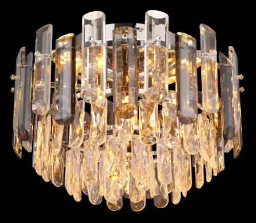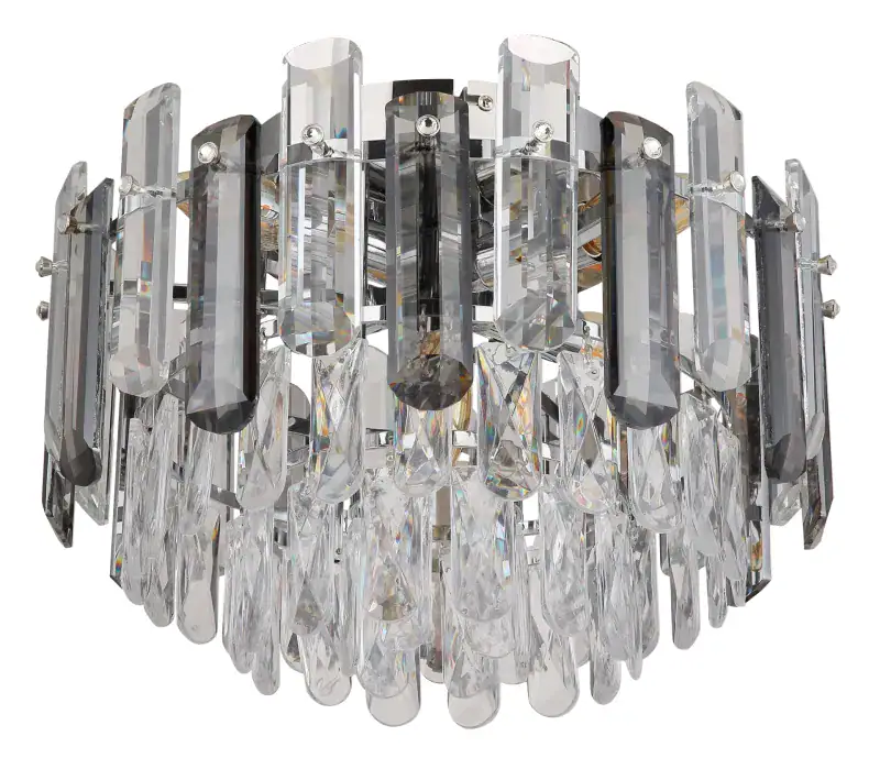 ORGINA plafonska lampa kombinuje svetlucave kristalne zavese sa staklenim šipkama u boji dima za luksuzno osvetljenje. Pogodno za E14 sijalice (ekskluzivno).