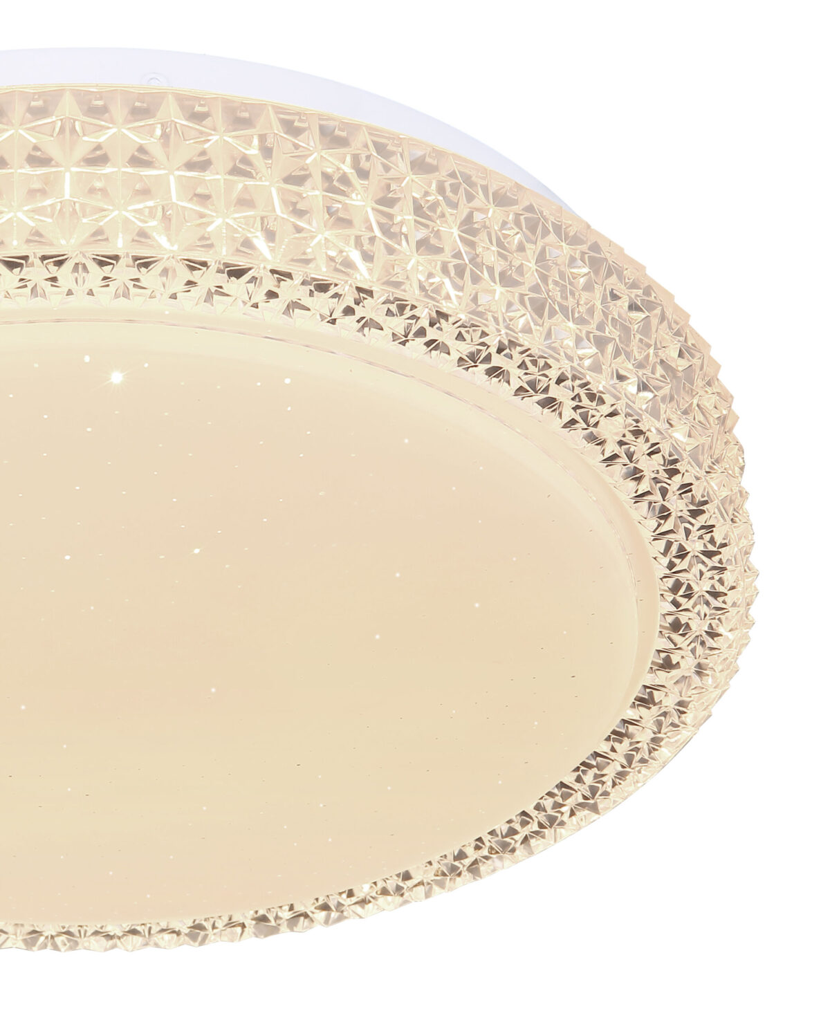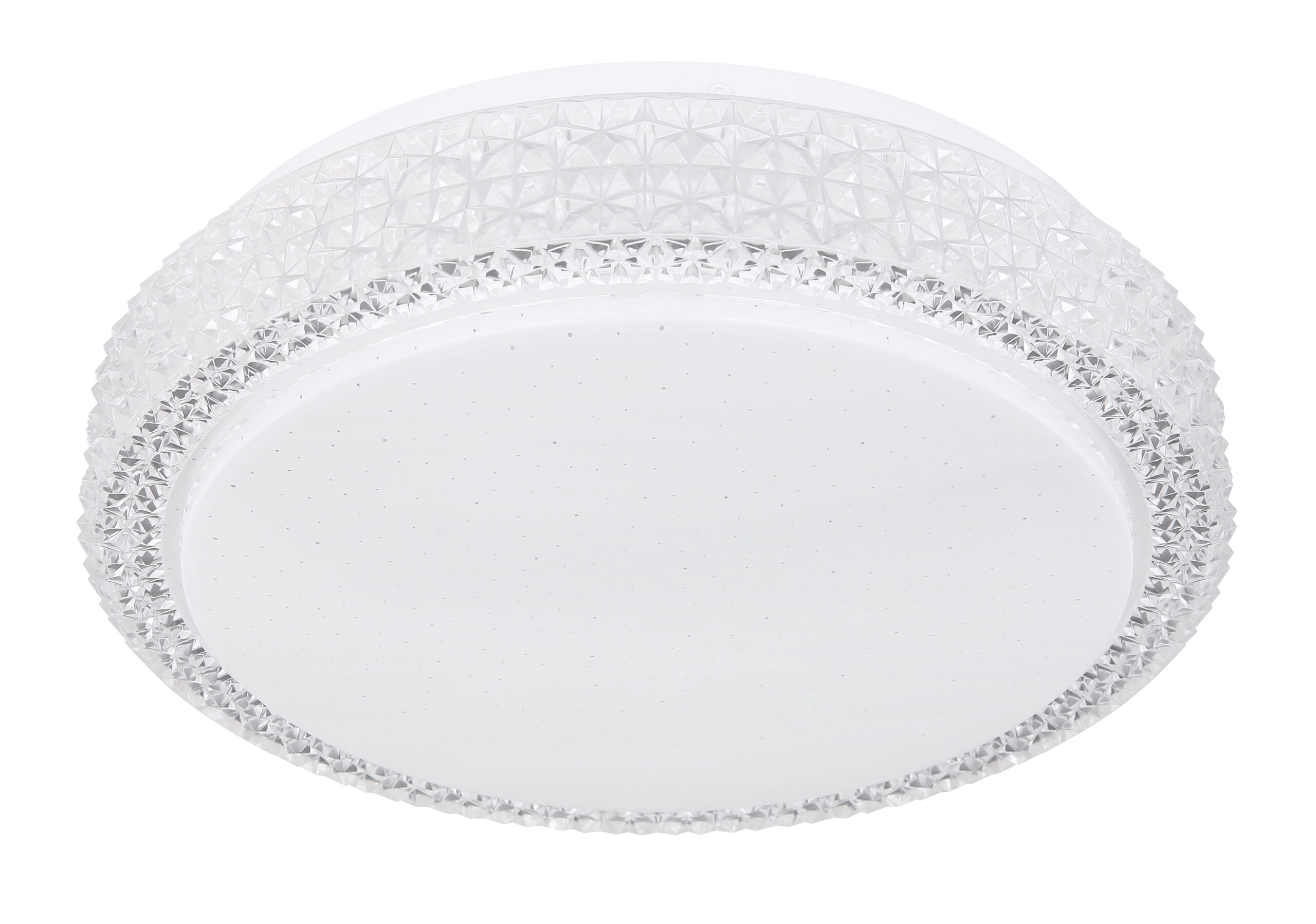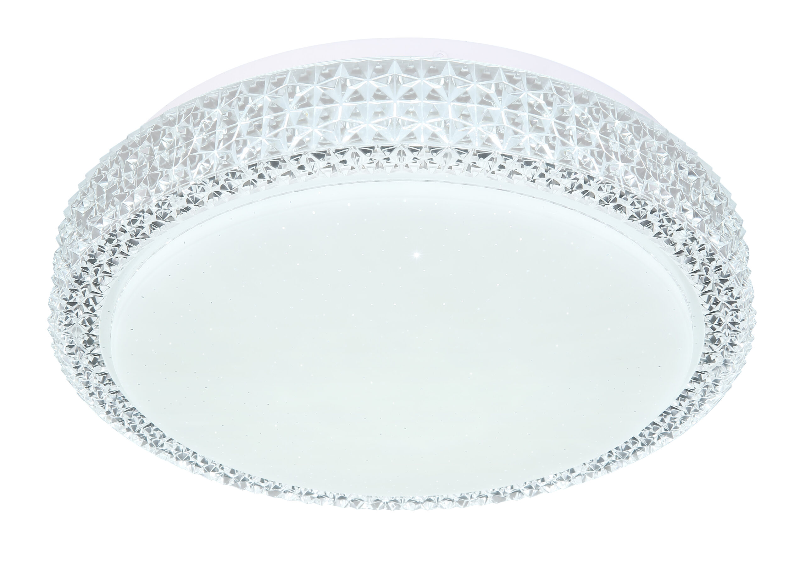 Ova okrugla (Ø30cm) LED plafonska lampa ističe se svojom izradom i plemenitim dizajnom. Kombinacija bijelog metala, Sparekle dekora i prozirnih plastičnih kristala definitivno privlači poglede! Osim toga, boja svjetla može se mijenjati u tri faze pomoću zidnog prekidača po želji. (Topla bela 3000K – neutralna bela 4000K – hladna bela 6000K).