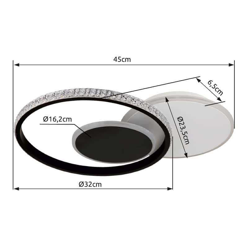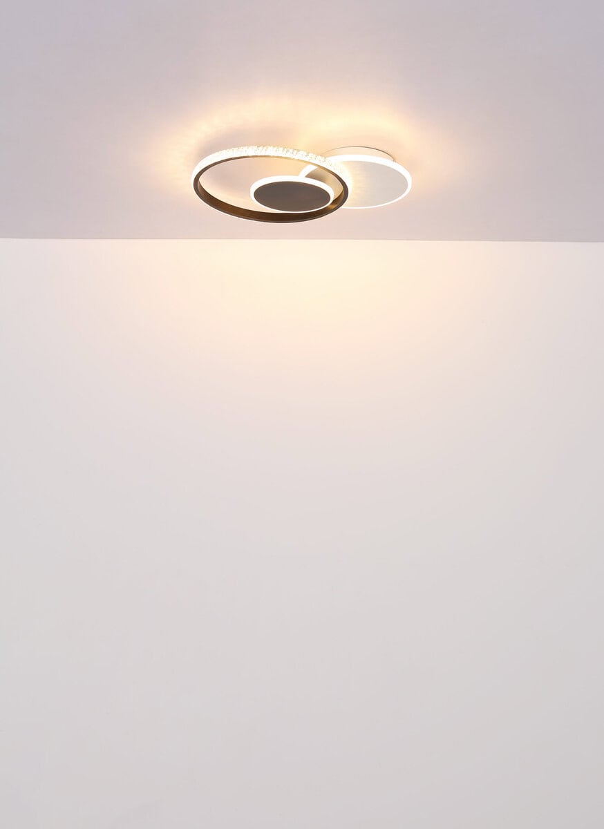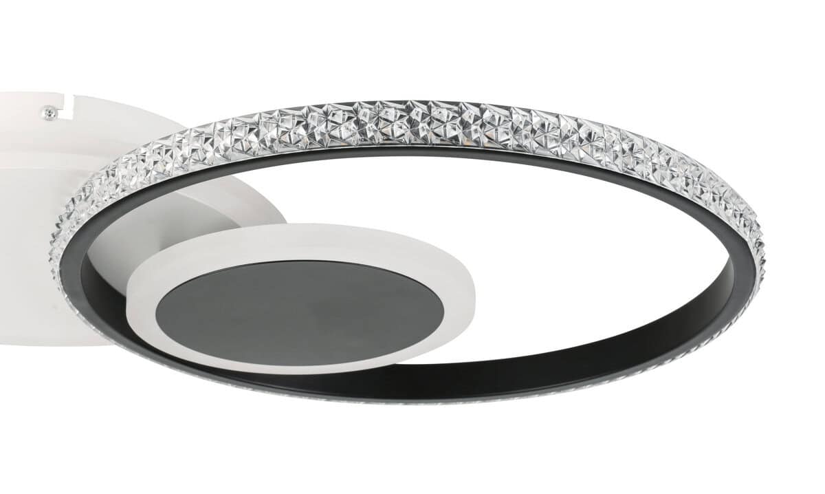 Pravougaona plafonska lampa sa tri prstena raspoređena jedan na drugom predstavlja estetski vrhunac za svaku prostoriju. Tijelo od mat bijelog metala i mat crnog metala daje ovoj plafonskoj lampi moderan dizajn. Nijansa je napravljena od opal akrila i prozirnih plastičnih kristala koji pružaju glamurozni sjaj. Sa dužinom od 450 mm i širinom od 320 mm, ova svetiljka nudi jako osvetljenje sa snagom od 1289 lumena i svetlosnom temperaturom od 3000K. Plafonska rasvjeta ima LED rasvjetu koja štedi energiju sa 18W snage. Ova pravougaona plafonska lampa nije samo moderan dodatak vašem domu, već pruža prijatno i efikasno osvetljenje u svakoj prostoriji.