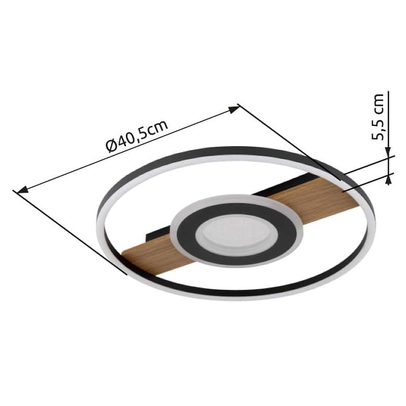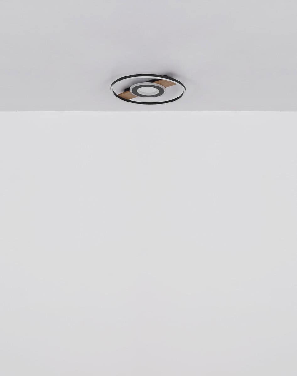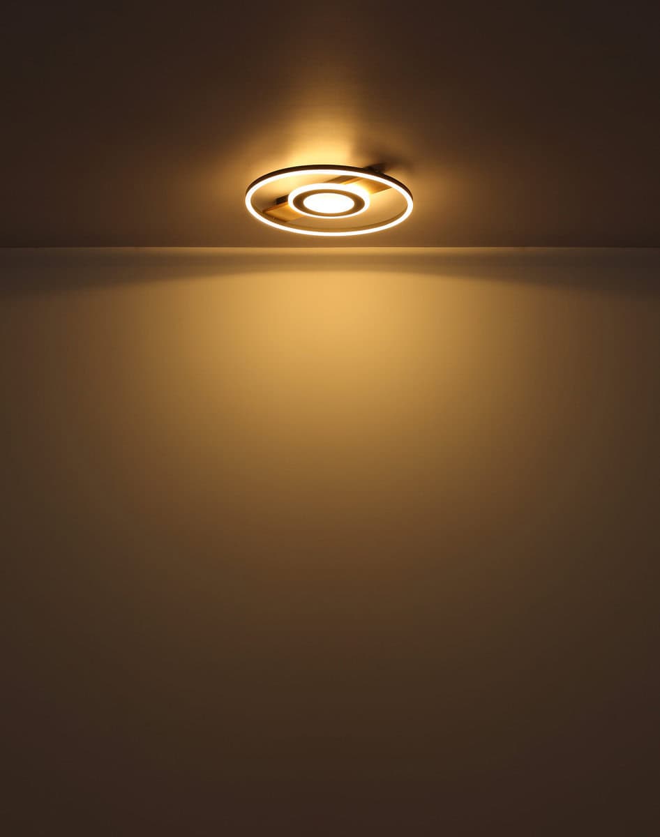 Plafonska lampa PIKARA impresionira svojim modernim, dvokružnim dizajnom i unosi eleganciju u svaku prostoriju. Metalno kućište u izgledu drveta sa mat crnom završnom obradom daje lampi savremen, ali prirodan izgled. Dva postavljena prstena od crnog, mat aluminijuma i opalnog akrila osiguravaju harmoničnu distribuciju svjetlosti, dok prozirni akrilni kristali dodaju dodatne naglaske. Sa prečnikom od 405 mm i osvjetljenjem od 800 lumena, PIKARA pruža dovoljno svjetla za dnevne sobe ili kao stilsko akcentno osvjetljenje. Topla bela boja svetla od 3000 K stvara ugodnu atmosferu, idealnu za dnevne sobe ili spavaće sobe. Ova LED stropna svjetiljka kombinira formu i funkciju do savršenstva i postaje prava privlačnost za oko sa svojim elegantnim dizajnom i visokokvalitetnim materijalima. Savršeno za one koji traže moderan dizajn s dozom glamura.