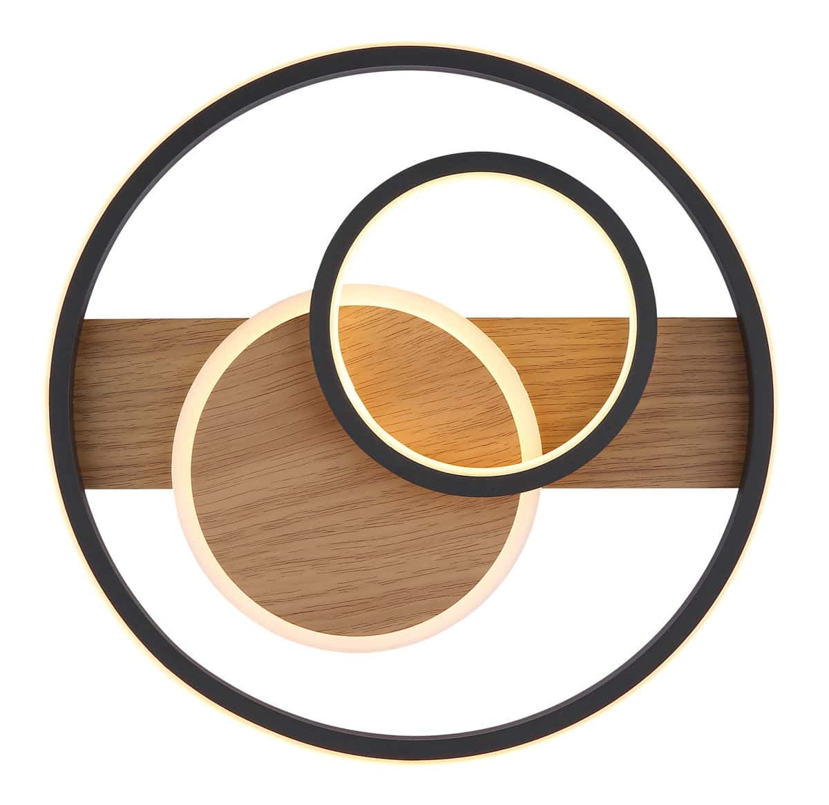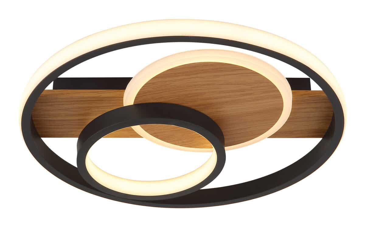 PIKARA plafonska lampa sa tri prstena kombinuje moderan dizajn i modernu LED tehnologiju. Okruglo metalno kućište sa izgledom drveta daje lampi topao i prirodan izgled, dok joj tri crna mat aluminijumska sjenila daju elegantan i bezvremenski izgled. Satenski obrađeni akrilni i opalni silikonski elementi sjenila nježno i ravnomjerno raspršuju svjetlost po prostoriji. Sa prečnikom od 345 mm i svetlosnom snagom od 1000 lumena, PIKARA pruža prijatnu, toplu belu svetlost na 3000 K, koja je idealna za dnevne sobe ili trpezarije. Integrisana LED tehnologija ne samo da nudi visoku energetsku efikasnost, već i dug radni vek. Tri ukrasna prstena plafonske lampe stvaraju zanimljiv rasvjetni prikaz koji vizualno oplemenjuje svaku prostoriju i stvara privlačnu atmosferu. PIKARA je savršen izbor za one koji žele spojiti dizajn i funkcionalnost.