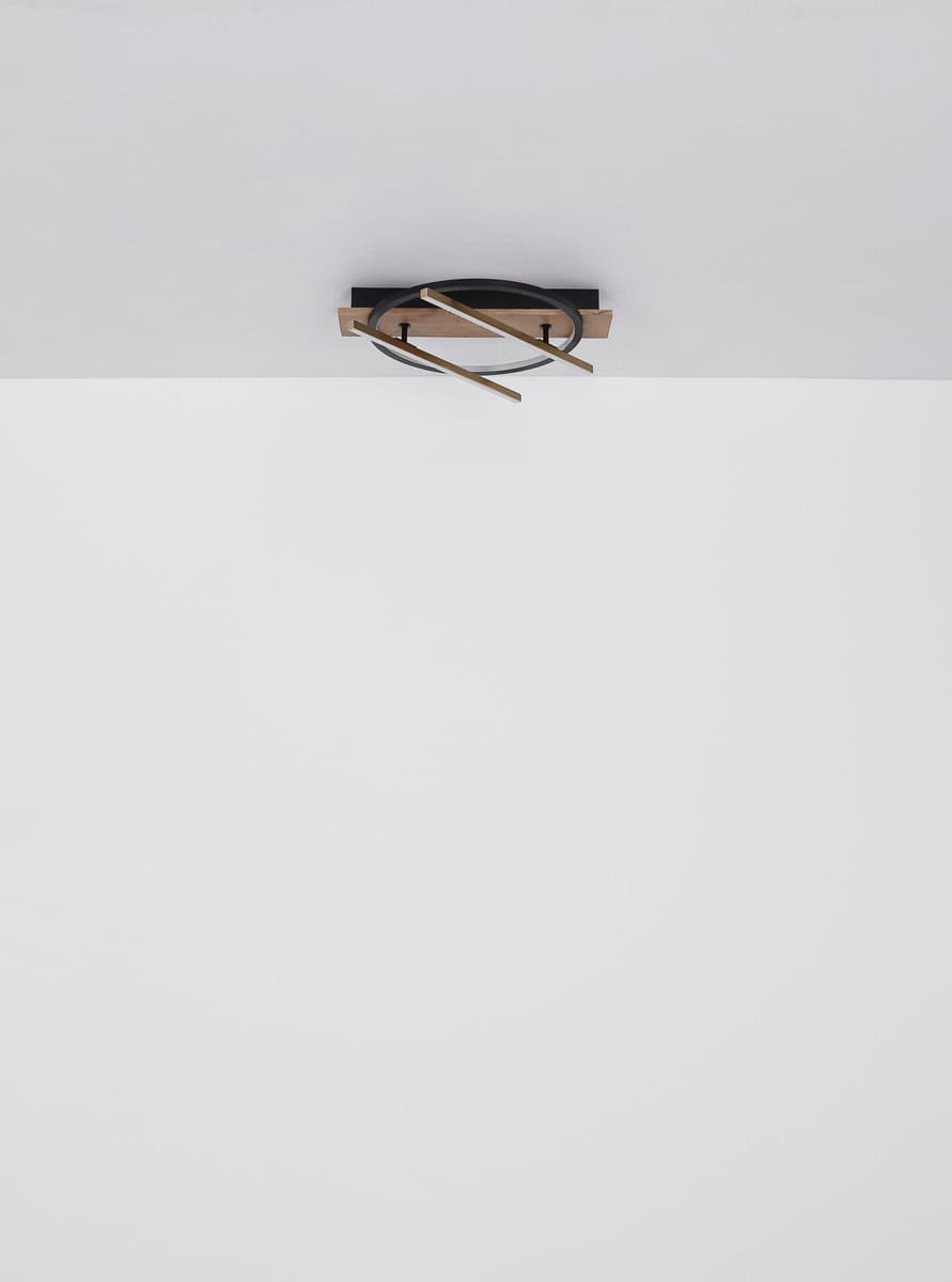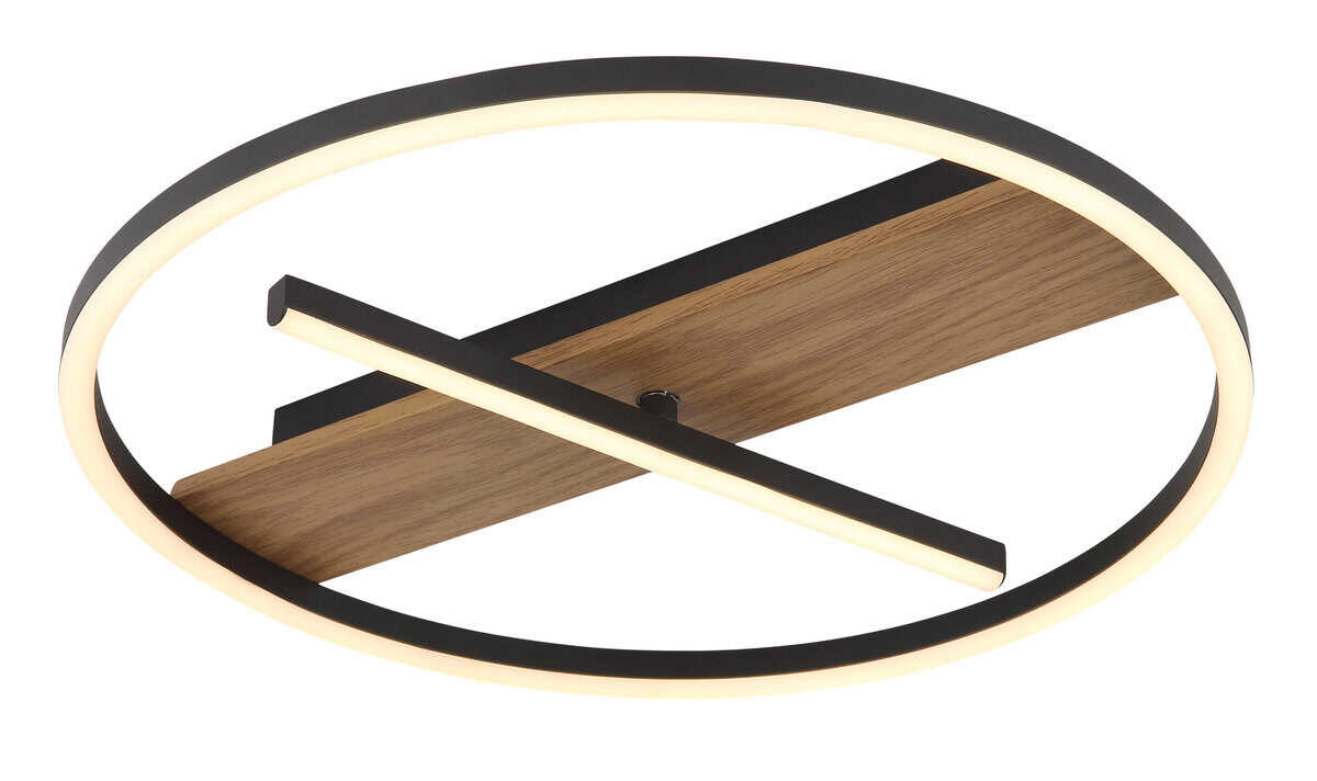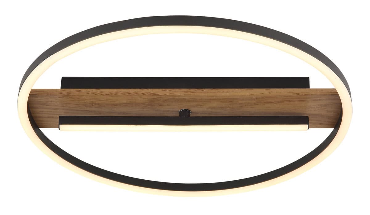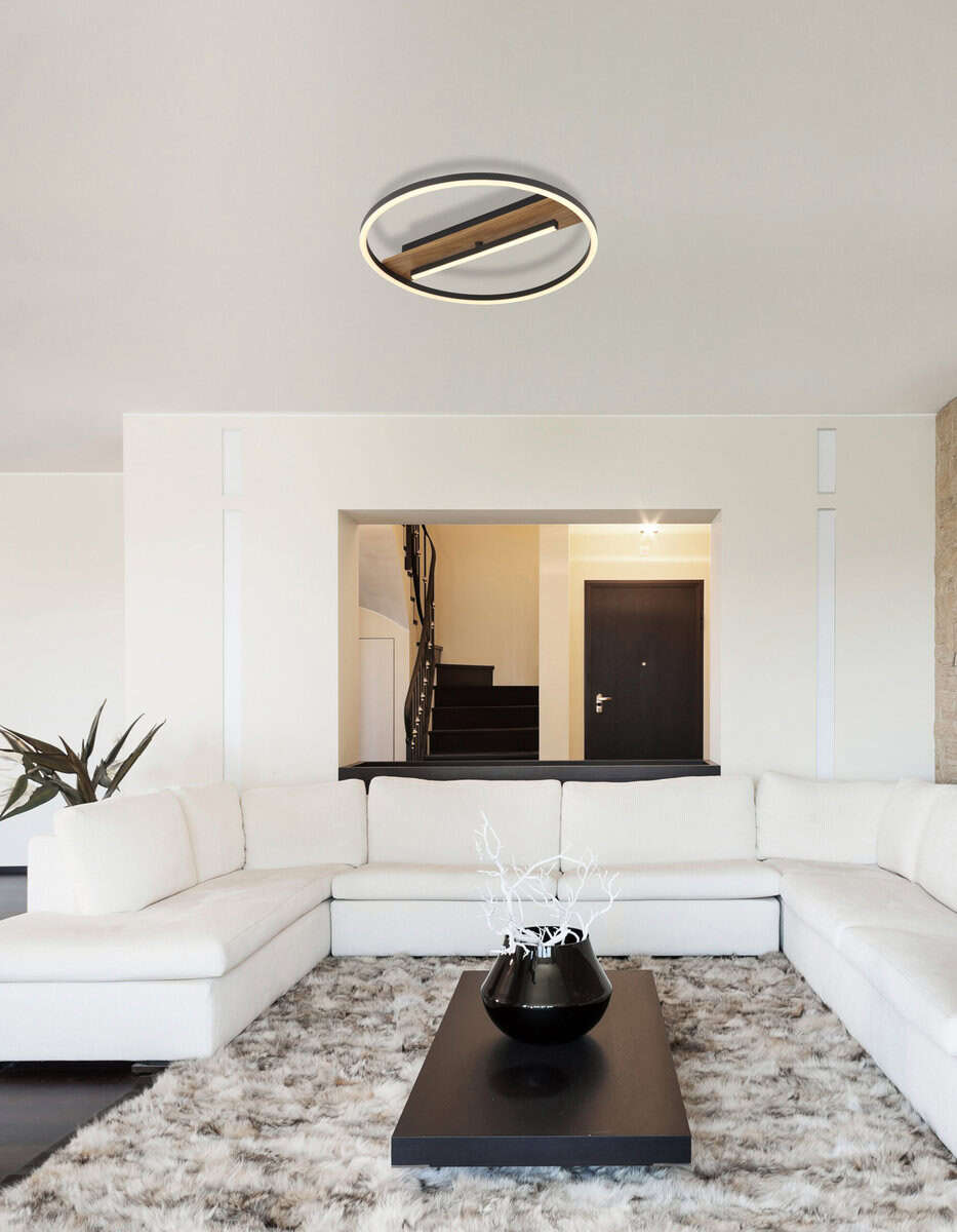 Plafonska lampa PIKARA kombinuje moderan dizajn sa funkcionalnom rasvetom. Njegov karakterističan, okrugli izgled naglašava centralno postavljena, rotirajuća LED šipka, koja ne samo da se vizuelno ističe, već omogućava i fleksibilno poravnavanje svetlosti. Telo lampe je napravljeno od metala sa efektom drveta, što joj daje topao i prirodan dodir. Sjenilo izrađeno od mat, crnog aluminija i opal silikona osigurava harmoničnu distribuciju svjetlosti. Sa prečnikom od 405 mm i osvetljenošću od 530 lumena, PIKARA nudi dovoljno svetla za manje prostorije ili kao akcentno osvetljenje. Topla bela boja svetla od 3000 K stvara ugodnu atmosferu, savršenu za dnevne sobe ili spavaće sobe. Ova moderna lampa kombinuje elegantan izgled sa visokom funkcionalnošću i tako postaje prava privlačna za oči u svakoj prostoriji. Savršeno za sve koji traže jedinstveni svjetlosni objekt sa karakterom.