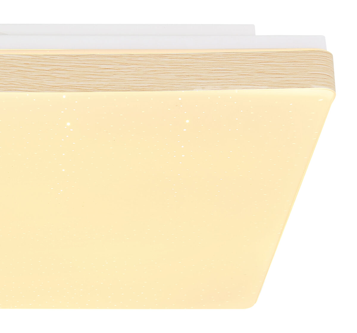 Ova bezvremenska plafonska lampa iz serije Raina prodire kroz svoju prelepu kombinaciju boja. Sastoji se od okvira u izgledu drveta i LED ploče, ugodno sija toplom bijelom svjetlošću od 3000 Kelvina i uljepšava vaše sobe drugim izvorom svjetlosti.