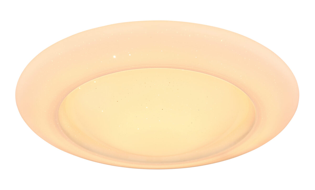 Kružna stropna svjetiljka Rava (ø 51 cm) od bijelog akrila je fleksibilan i moderan dodatak vašem interijeru. Plafonsko svjetlo pruža 2270 lumena jakog svjetla i može se prigušiti pomoću priloženog daljinskog upravljača. Međutim, pomoću daljinskog upravljača također možete podesiti boju svjetla u nekoliko koraka između 3000 Kelvina (toplo bijelo) i 6500 Kelvina (hladno bijelo) i pustiti da plafonska lampa sija u RGB bojama. Osim toga, možete zasebno podesiti osvjetljenje vanjskog prstena i srednjeg dijela. Sa plafonskom lampom Rava možete osvijetliti svoje interijere prema vašim idejama i stvoriti ugodan ambijent.