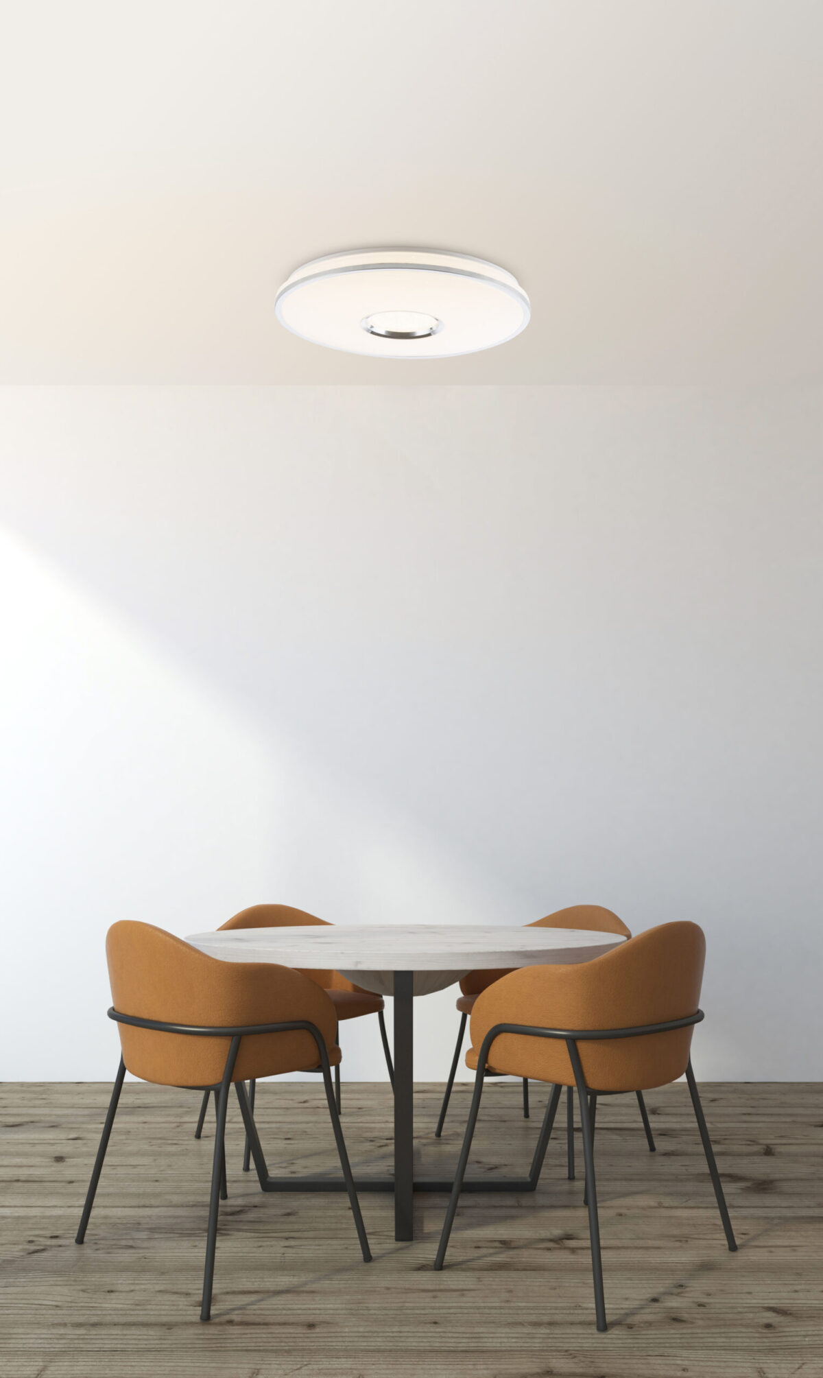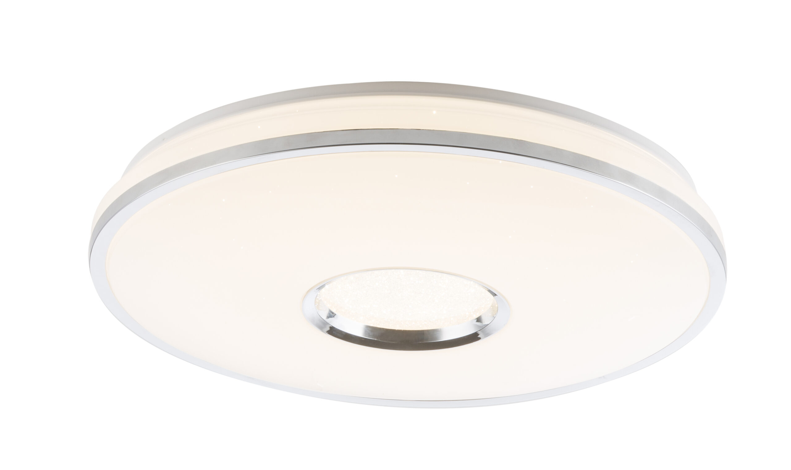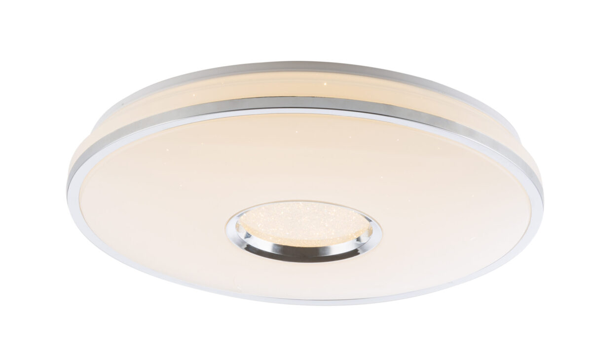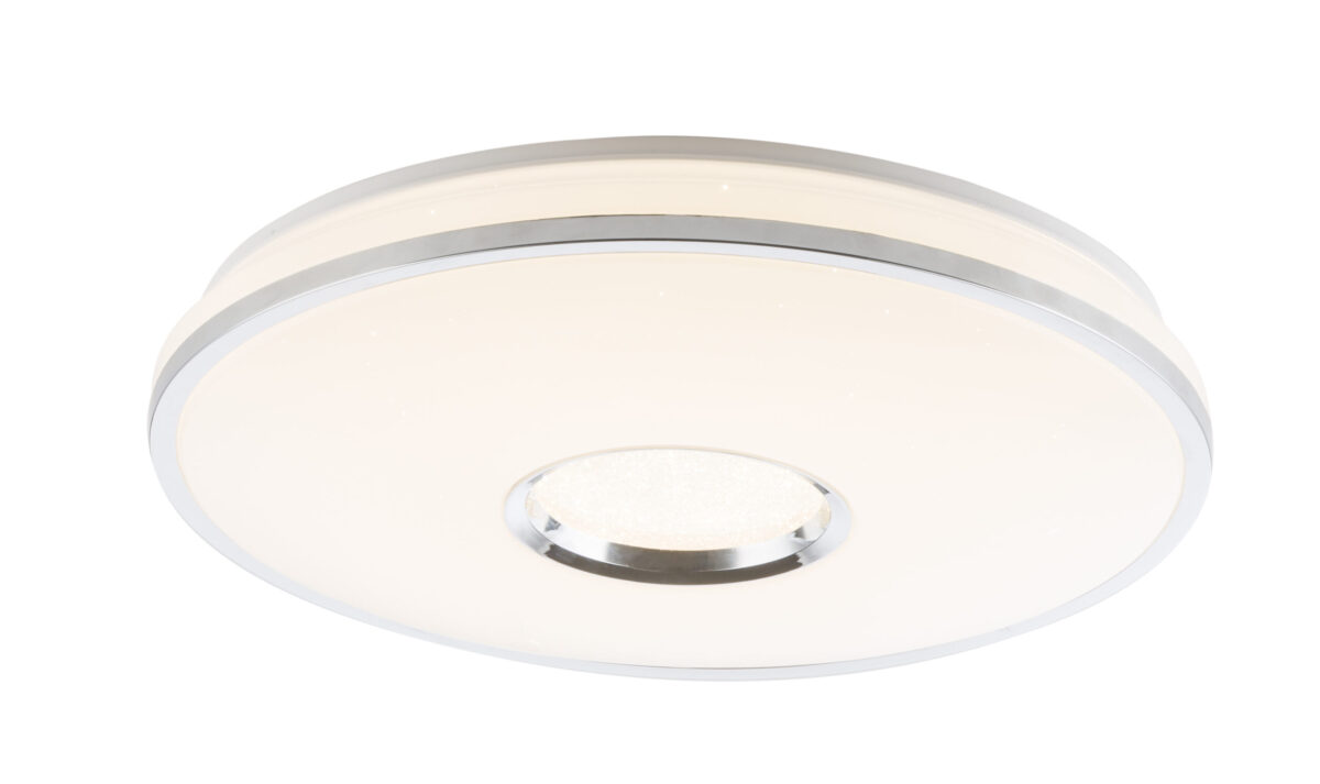 Sa ovom plafonskom lampom Rena, može se kreirati širok izbor scenarija osvetljenja kako bi se prostoriji dao idealan ambijent. Možete mijenjati i fiksirati temperaturu boje od 3000K do 6000K po želji pomoću priloženog daljinskog upravljača. Osim toga, možete prigušiti svjetlo po želji, tako da svako može sam odlučiti koliko želi svjetlost. Lampa od 49 cm izrađena je od bijelog metala i opal akrila, a u sredini lampe nalazi se Sparkle dekor uzorak. Zahvaljujući uključenoj LED sijalici od 60 vati, svetiljka daje 4800 lumena jakog svetla. Takođe, plafonsku lampu možete odlično kombinovati sa drugim modelima iz serije i najbolje je integrisati je u spavaću sobu.
