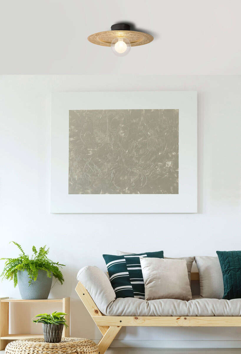 Plafonska lampa RIGA kombinuje tradicionalni dizajn sa modernim akcentima i predstavlja stilski vrhunac za vaš dom. Sa svojim okruglim dizajnom ravnog diska i elegantnim dekorom, ova lampa donosi eleganciju i bezvremensku ljepotu u svaku prostoriju. Kućište izrađeno od mat crnog metala i plastike pruža moderan, ali klasičan izgled. Plastična nijansa zlatne boje skladno se nadopunjuje s opalom i prozirnim staklom, koje nježno i ravnomjerno raspoređuje svjetlost. Svetiljka RIGA je opremljena G9 LED sijalicama, koje pružaju energetski efikasno osvetljenje i stvaraju prijatno svetlosno raspoloženje. Idealna za klasične i moderne stilove opremanja, plafonska lampa RIGA nudi funkcionalnost i estetske standarde i postavlja ukusne akcente u svakoj prostoriji.