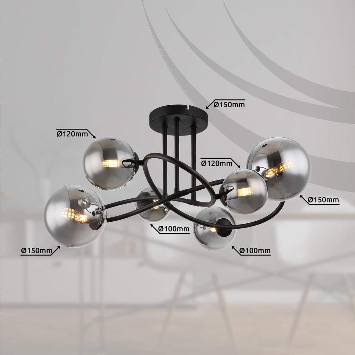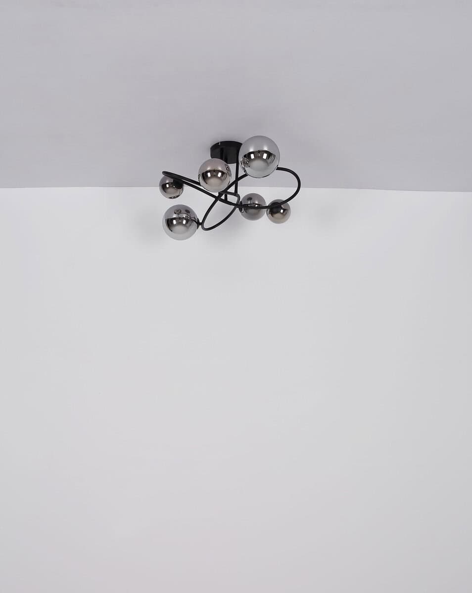 Otkrijte RIHA stropnu lampu: impresivan komad rasvjete za elegantnu atmosferu u domu. Savremeni dizajn i visokokvalitetni materijali čine ih privlačnim za oko. Crni mat metal i dimljeno staklo dodaju sofisticiranost i dobro se slažu s različitim stilovima interijera. Sa prečnikom od 60 cm i visinom od 43 cm, plafonska lampa je idealna za sobe srednje veličine. Staklo u boji dima pruža meku distribuciju svjetlosti i ugodnu atmosferu. Šest G9 LED sijalica, svaka sa 350 lumena, daju jako i energetski efikasno osvetljenje. Temperatura tople bijele boje stvara ugodno raspoloženje i idealna je za dnevni boravak, spavaće sobe ili blagovaonice. Plafonska lampa je estetski ugodna i jednostavna za ugradnju. Svi pričvršćivači su uključeni. Unesite modernu i atraktivnu rasvjetu u svoj dom uz RIHA i uživajte u ambijentu dobrodošlice u svakoj prostoriji.