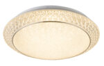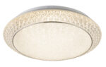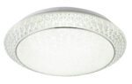 Ova okrugla (Ø41cm) klasična plafonska lampa odlikuje se materijalom i izradom, kao i svojim plemenitim dizajnom. Kombinacija bijelog metala, satenskog akrila i prozirnih plastičnih kristala daje sjajno svjetlo. Boja svjetla zatamnjenih 1845 lumena može se mijenjati u tri stupnja daljinskim upravljačem (topla bela 3000K – neutralna bela 4000K – hladna bela 6000K).