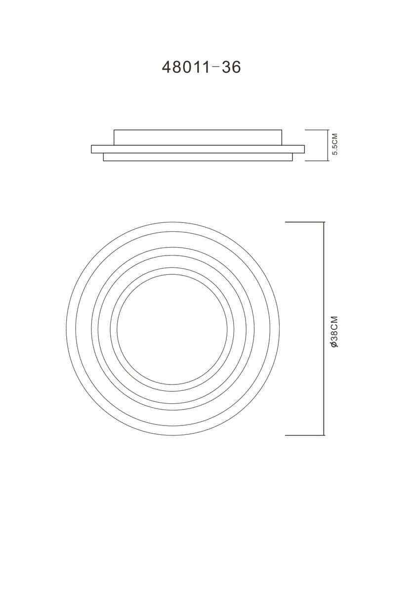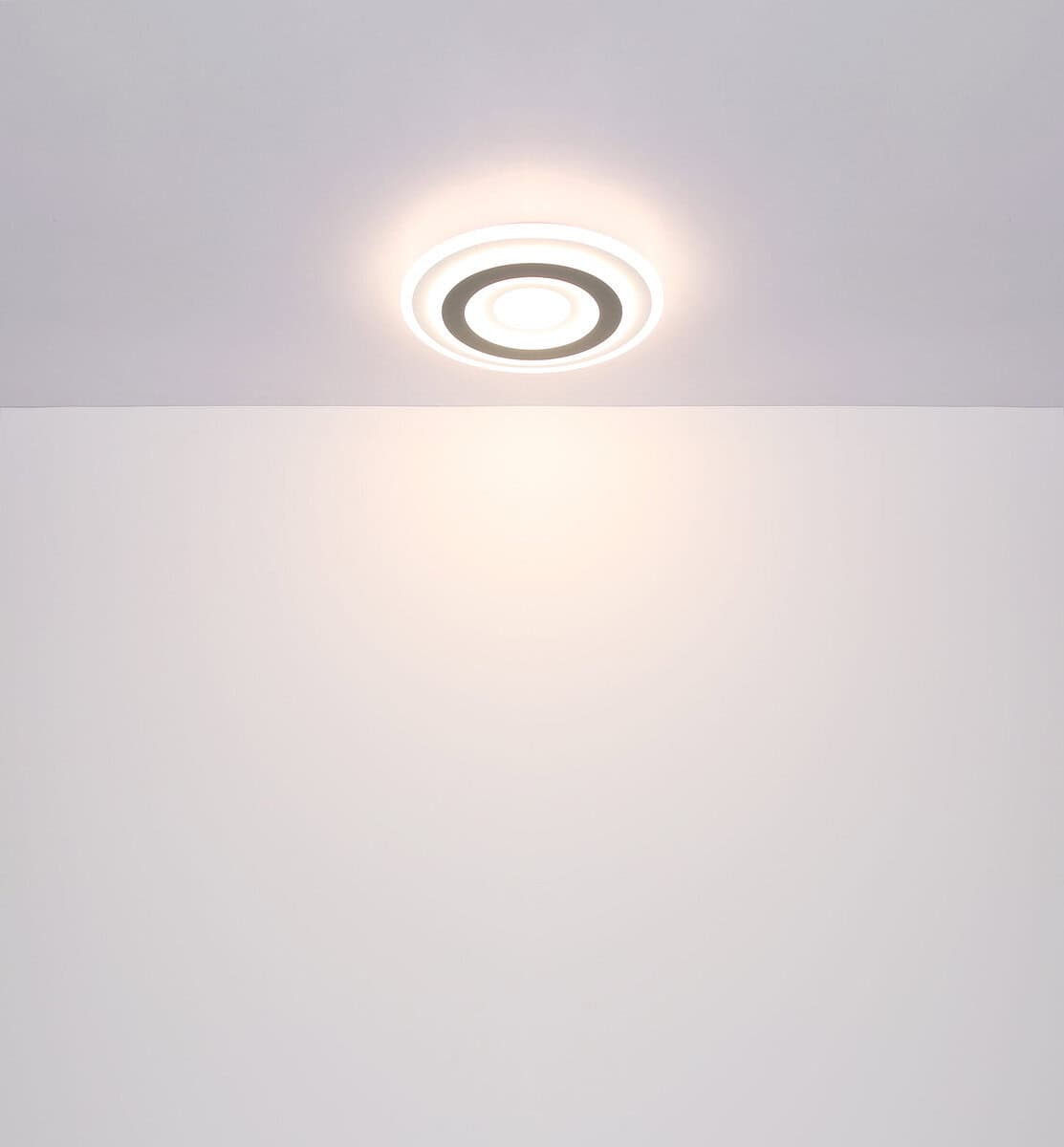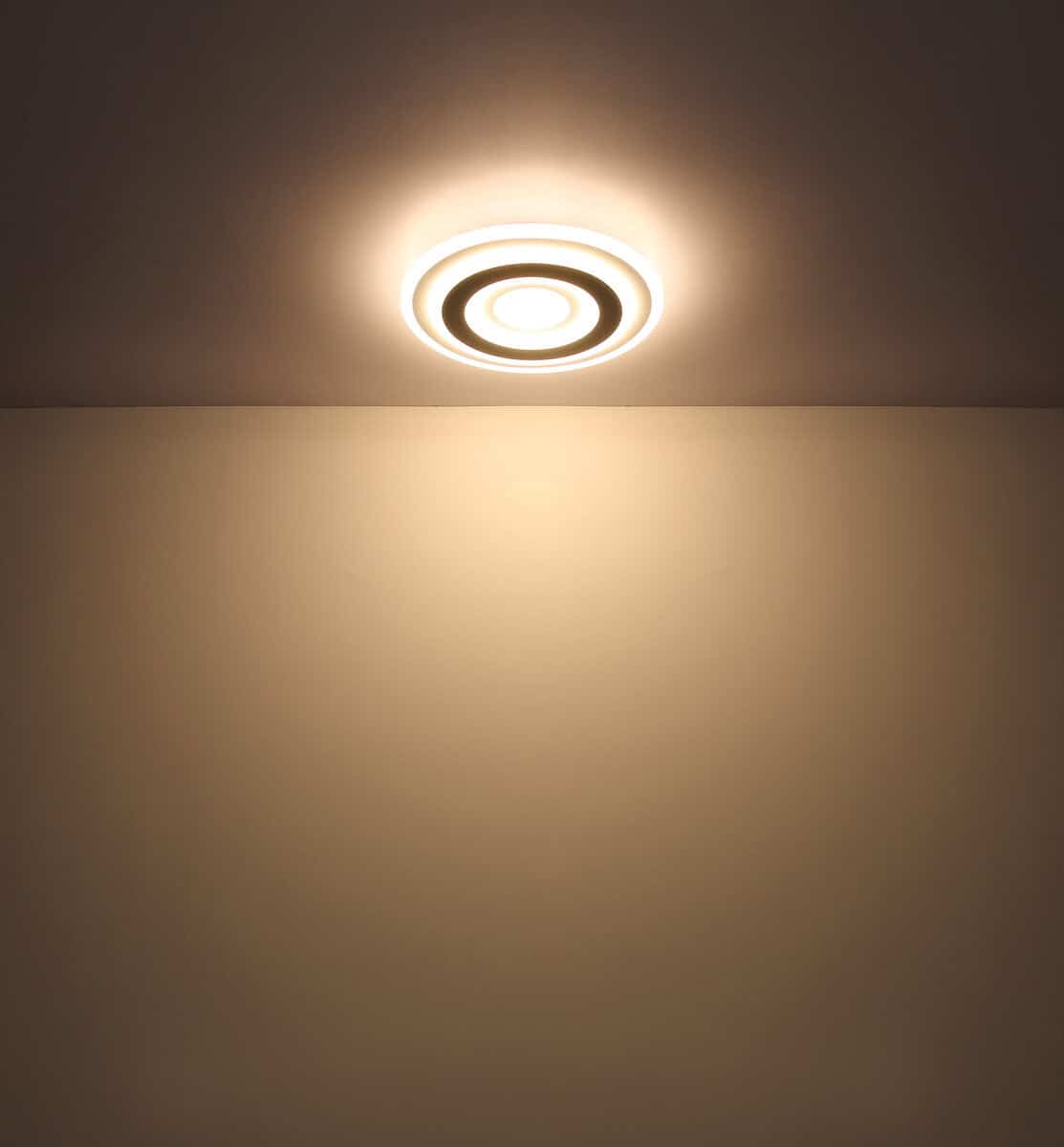 Moderna plafonska lampa serije Sabatino inspiriše svojim dizajnom i funkcijama. Okrugla plafonska lampa (Ø38cm) odličnog izgleda ima funkciju noćnog svetla, memorijsku funkciju i uključen daljinski upravljač. Pomoću daljinskog upravljača, svjetiljka se može prigušiti i fiksirati između nivoa svjetla od 2700 Kelvina toplo bijelo do 6000 Kelvina hladno bijelo.