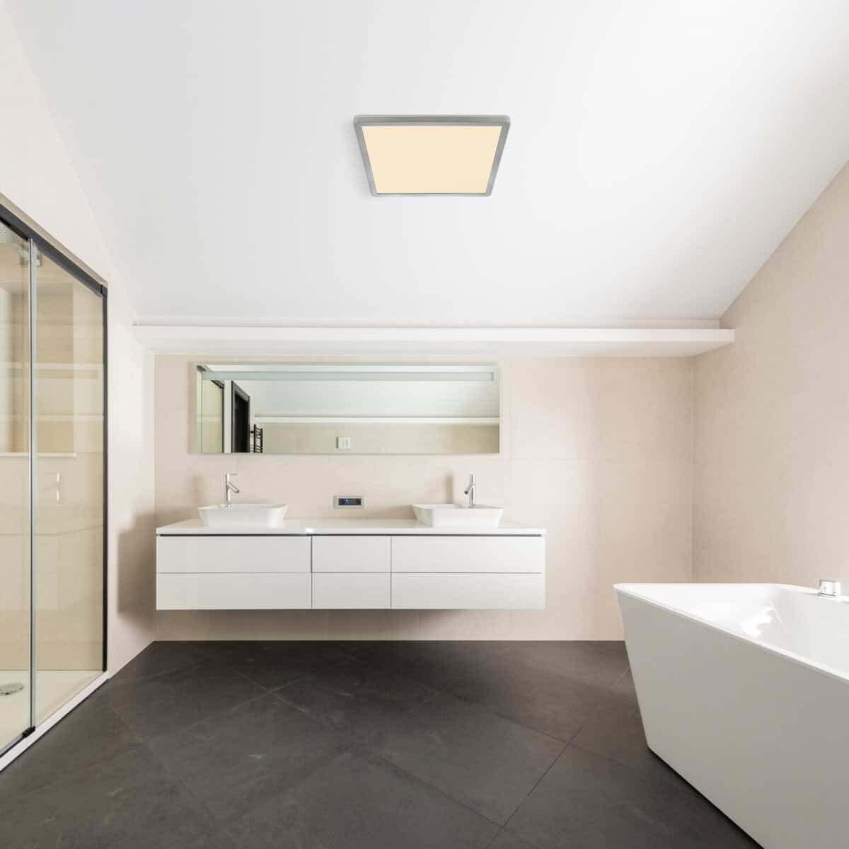 Uronite u elegantnu atmosferu SAPANA plafonske lampe. Mat nikalna završna obrada plastičnog kućišta u kombinaciji sa satenskom i opal plastikom stvara toplo svjetlo bez odsjaja koje obavija vaš prostor s daškom sofisticiranosti. Inovativna funkcija preko zidnog prekidača omogućava podešavanje osvjetljenja u različitim fazama – od 100% do 50% i 10% svjetline. SAPANA također nudi meko pozadinsko osvjetljenje koje stvara dodatnu atmosferu. Zahvaljujući praktičnoj funkciji memorije, možete zadržati željena podešavanja. Sa dimenzijama 294x294x25mm, SAPANA se harmonično uklapa u svaku prostoriju. Svetiljka je opremljena energetski efikasnim LED rasvjetnim sistemom od 18W koji proizvodi izvor svjetlosti od 2100lm i svjetlosnu efikasnost od 1600lm. Uživajte u toploj i privlačnoj svjetlosti s temperaturom boje od 3000K. SAPANA takođe ima IP44 sertifikat, što ga čini idealnim za vlažna okruženja kao što su kupatila. Neka SAPANA uljepša vaš dom svojim elegantnim dizajnom i sjajnom rasvjetom.