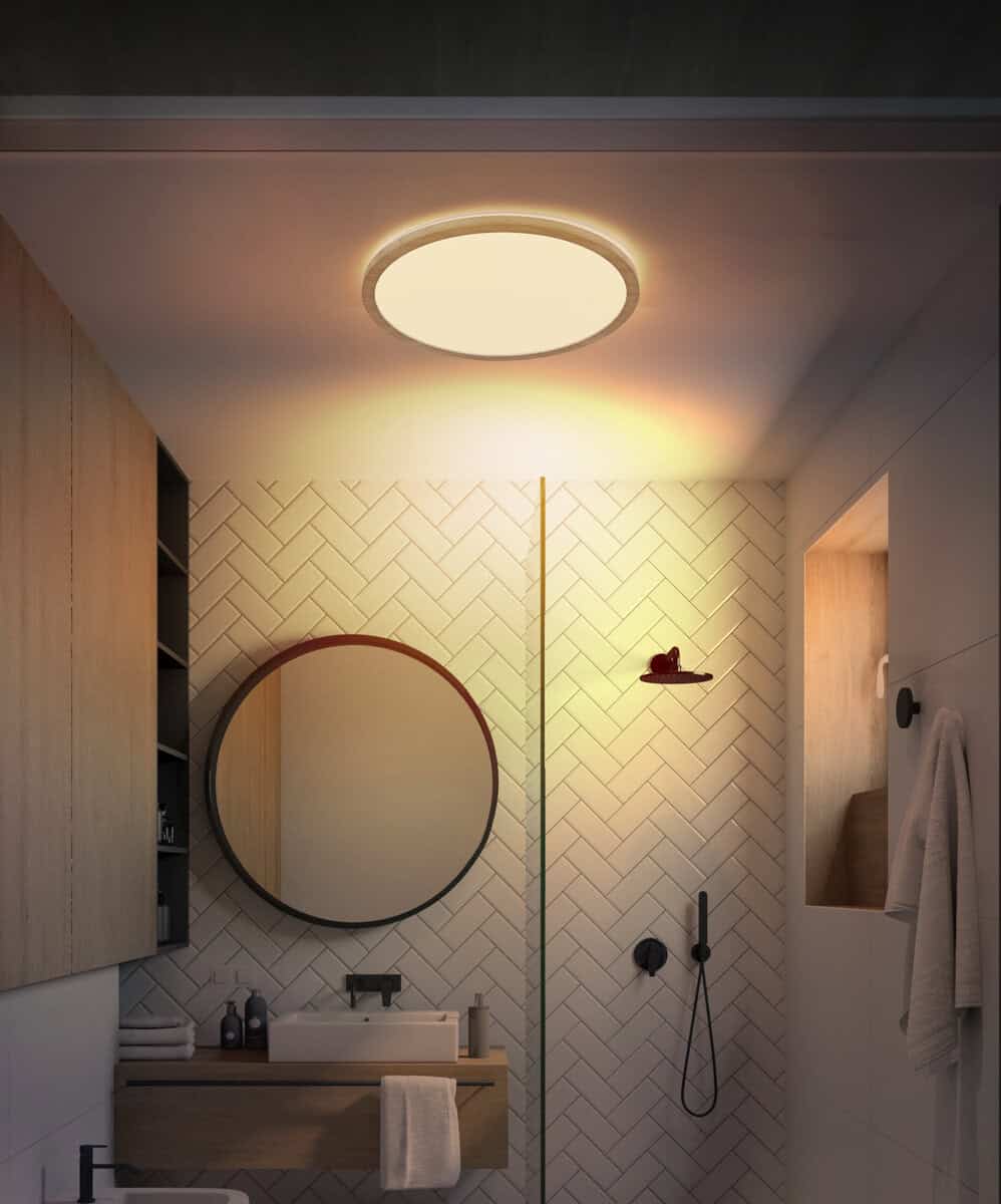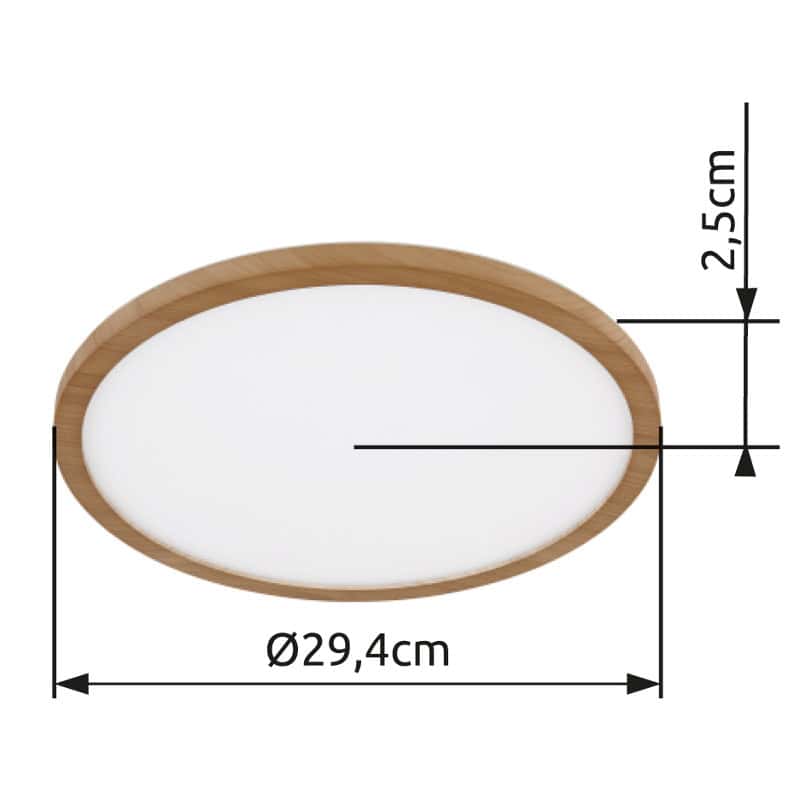Uronite u toplu i privlačnu atmosferu plafonske lampe SAPANA. Drvo-optičko plastično kućište u kombinaciji sa satenskom i opal plastikom stvara meko i difuzno svjetlo koje ispunjava vašu sobu ugodnom atmosferom. Inovativna funkcija preko zidnog prekidača omogućava podešavanje osvjetljenja u različitim fazama – od 100% do 50% i 10% svjetline. SAPANA takođe nudi suptilno pozadinsko osvetljenje koje stvara dodatnu atmosferu. Zahvaljujući praktičnoj funkciji memorije, možete zadržati željena podešavanja. Sa prečnikom od 294 mm i visinom od 25 mm, SAPANA se elegantno uklapa u svaku prostoriju. Svetiljka je opremljena energetski efikasnim LED rasvjetnim sistemom od 18 W koji proizvodi izvor svjetlosti od 2100 lm i svjetlosnu efikasnost od 1600 lm. Uživajte u toploj i privlačnoj svjetlosti s temperaturom boje od 3000K. SAPANA takođe ima IP44 sertifikat, što ga čini idealnim za vlažna okruženja kao što su kupatila. Neka SAPANA uljepša vaš dom svojim elegantnim dizajnom i sjajnom rasvjetom.