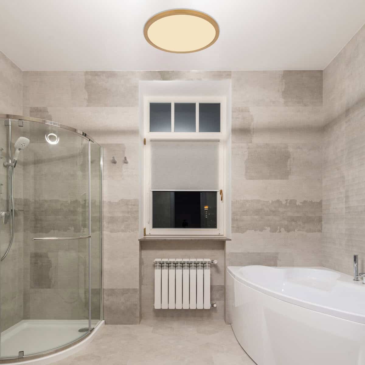 Otkrijte elegantnu plafonsku lampu SAPANA, savršen dodatak vašem kupatilu. Sa svojim okruglim dizajnom i prečnikom od 294 mm, ova lampa se harmonično uklapa u svaku prostoriju. Tijelo svjetiljke za kupatilo SAPANA izrađeno je od mat plastike boje mesinga, dok je sjenilo od opal, bijele plastike. Ovo osigurava ugodno osvjetljenje bez odsjaja u vašem kupatilu. SAPANA plafonska lampa ne nudi samo jarko glavno osvetljenje, već i praktično pozadinsko osvetljenje. Sa snagom od 1600 lumena i temperaturom boje od 3000K, stvara toplu atmosferu. Sa SAPANA memorijskom funkcijom, lako možete podesiti željeni intenzitet svjetla. Tri nivoa svjetline (100%, 50% i 10%) mogu se odabrati preko zidnog prekidača. Budući da kupaonska svjetiljka SAPANA ima IP44 stepen zaštite, optimalno je zaštićena od vlage i prskanja vode. Tako da bez brige možete uživati u svakodnevnoj rutini u svom kupatilu. Nadogradite svoje kupatilo i odlučite se za SAPANA plafonsku lampu. Kombinira funkcionalnost i estetiku i stvara ugodnu atmosferu u vašem ličnom spa centru.