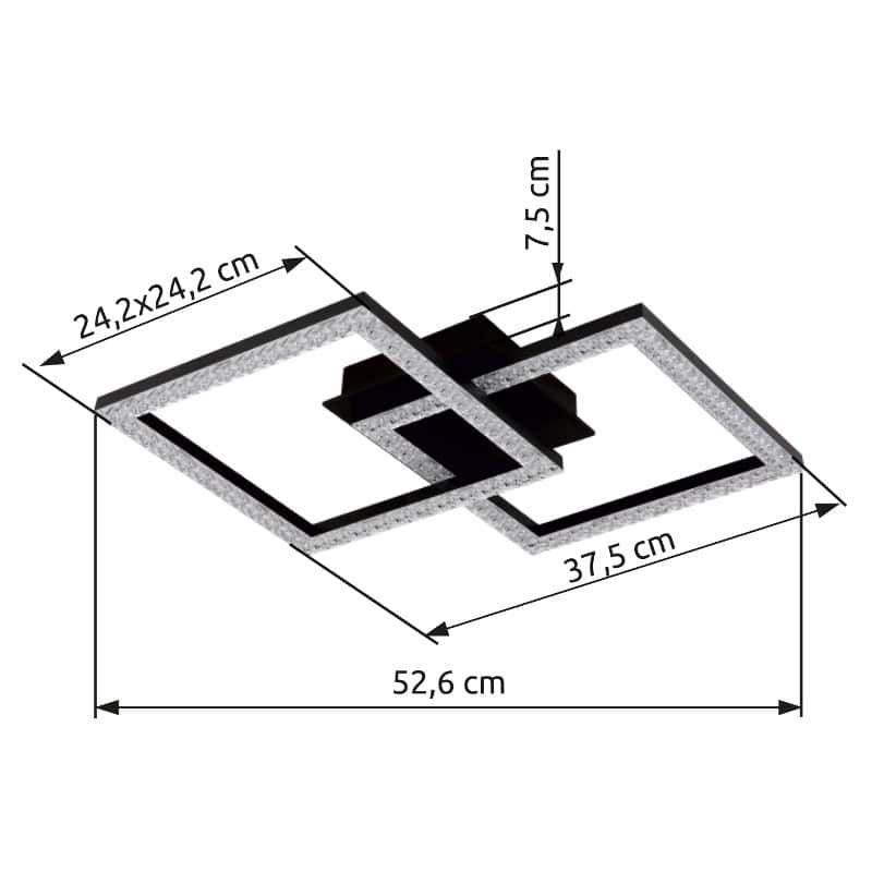 PLAFONA PLASTIČNA CRNA MAT impresionira svojim pravougaonim dizajnom sa dva kvadrata raspoređena jedan na drugom. Tijelo plafonske lampe je izrađeno od crne mat plastike, što joj daje moderan i jednostavan izgled. Sjenilo je izrađeno od prozirnih plastičnih kristala, koji pružaju prelijepo prelamanje svjetlosti i stvaraju ugodan ambijent. Sa dužinom od 525 mm i širinom od 345 mm, ova plafonska lampa obezbeđuje dovoljno svetla za različite veličine prostorija. Ugrađeni LED ima snagu od 20W sa izlaznom snagom od 1300 lumena, što obezbeđuje jako osvetljenje u vašoj sobi. Boja svjetla je 3000K, što stvara toplu i ugodnu atmosferu. PLAFONA PLASTIČNA CRNA MAT je moderan i praktičan izbor za dnevne i radne prostore, kao i za hodnike i ulazne prostore.