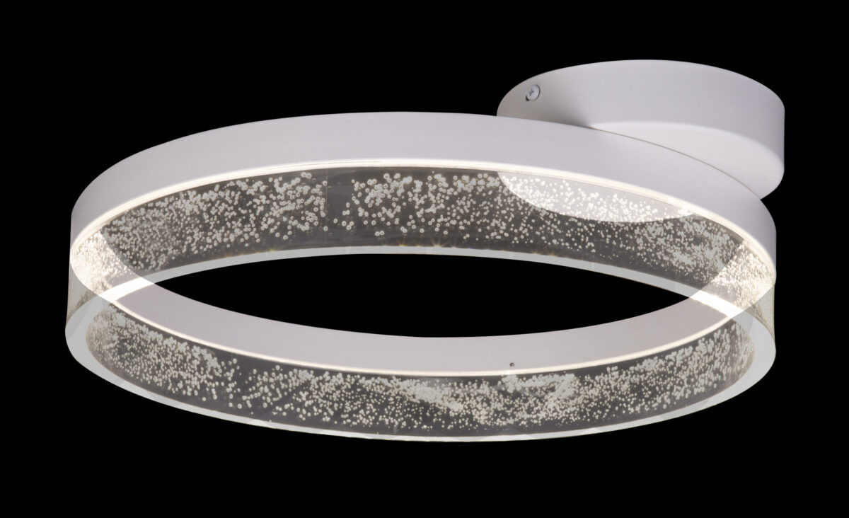 Ova impresivna visilica serije SMITTY unosi glamur u vaš dom. Na bijeli metal pričvršćen je prsten prečnika 40 cm. Ovaj prsten je kombinacija bijelog metala i akrilnog stakla. Zbog akrilnog stakla u prozirnoj optici sa zračnim mjehurićima, uključena LED sijalica od 24 vata reprodukuje 1800 lumena jakog svjetla s neutralno-bijelom svjetlosnom bojom od 4000 Kelvina. Sa daljim modelima ove serije možete dodatno ulepšati sliku svog životnog prostora.