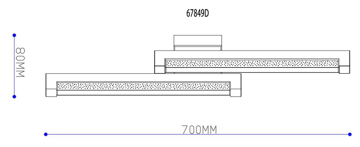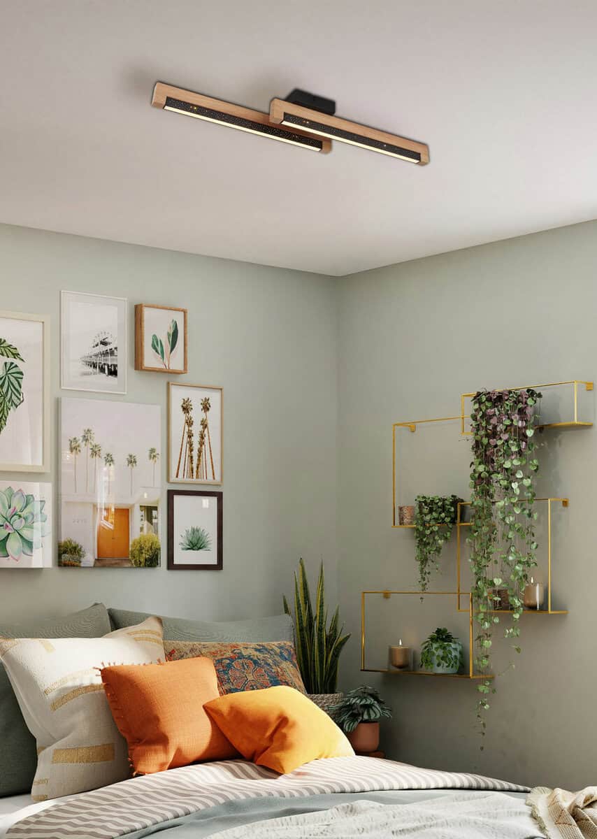 Pravougaona plafonska lampa sa dve ravne drvene grede je moderan dizajn za vaš dom. Mat crno lakirano metalno kućište u kombinaciji sa tamno smeđim drvenim gredama daje lampi rustikalan i istovremeno elegantan izgled. Aluminijumsko sjenilo je također mat crne boje i obrađeno opal plastikom, koja osigurava glatku raspodjelu svjetla bez odsjaja. Dimenzije svetiljke su 700mm dužine i 130mm širine. Sa snagom od 12W i izlaznom snagom od 320 lumena pri temperaturi boje od 3000K, ovo plafonsko svjetlo nudi dovoljno svjetline za svaku prostoriju. Aluminijumsko sjenilo je također opremljeno ukrasom u obliku zvijezde, koji pruža posebno lijepu igru svjetla kroz udarce. Unesite stil i svjetlinu u svoj dom uz ovu plafonsku lampu.