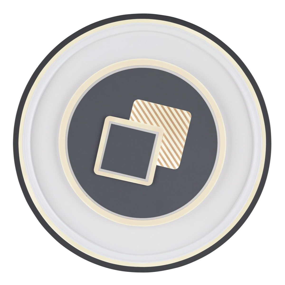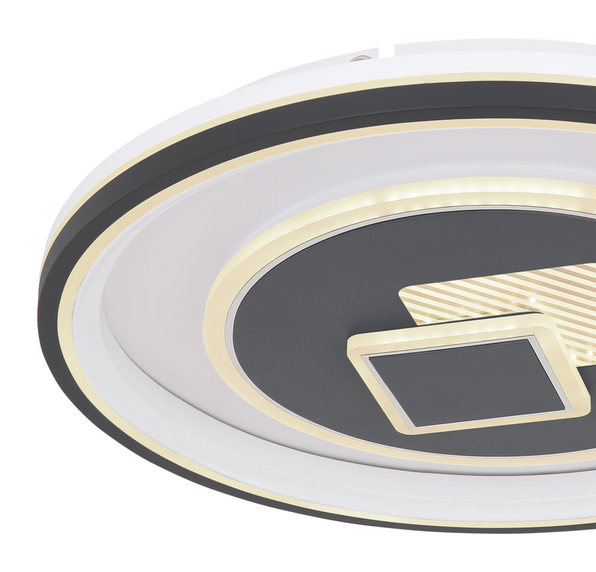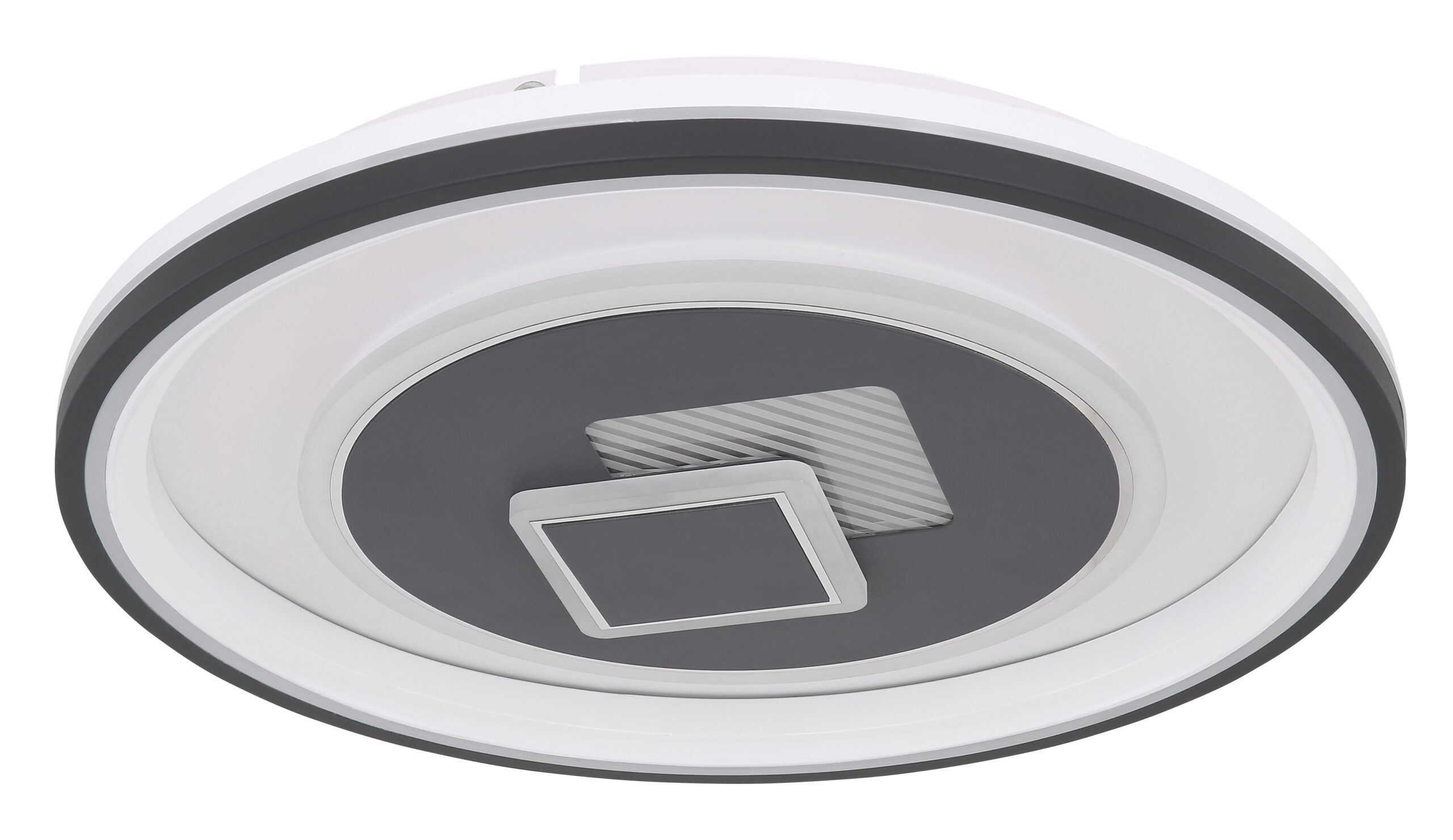 Ova izuzetno moderna plafonska lampa serije Sundi inspiriše svojim izgledom. Ova okrugla plafonska lampa sa crnim okvirom (Ø50cm) sastoji se od LED panela sa crnim pričvršćenim krugom i još dva mala pravougaonika u crnoj i beloj boji. Funkcija noćnog svjetla osigurava ugodno svjetlo, a memorijska funkcija čuva postavke nakon isključivanja svjetla. Uz pomoć priloženog daljinskog upravljača, možete popraviti i prigušiti boju svjetla od 2700 Kelvina toplo bijele, do 6000 Kelvina hladno bijele, stvarajući tako ugodniju životnu atmosferu. Toplo svjetlo u ulaznom dijelu ili jako svjetlo u kancelariji.