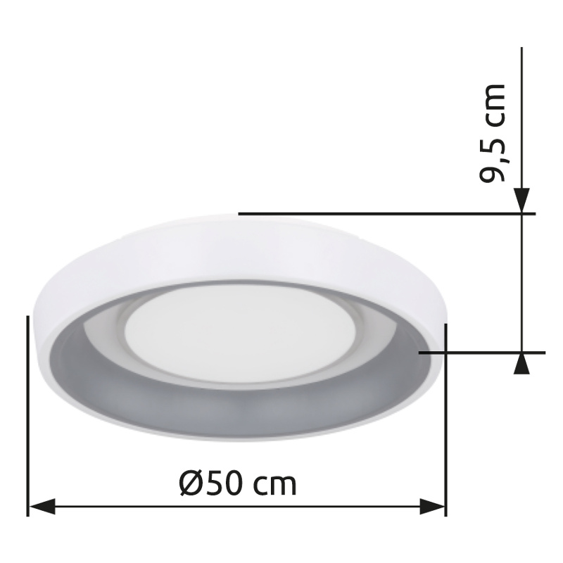 Tabano je plafonska lampa od visokokvalitetnog akrila i metala u beloj i antracit boji prečnika 500mm. Tabano ima noćno svjetlo i memorijsku funkciju, može se zatamniti, daljinski upravljač, boje se mogu popraviti. Originalna stvar ove lampe je okrugli dizajn na više nivoa i kombinacija boja. LED tehnologija štedi električnu energiju i osigurava vrlo ujednačeno toplo svjetlo.