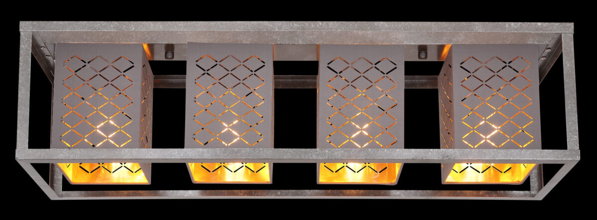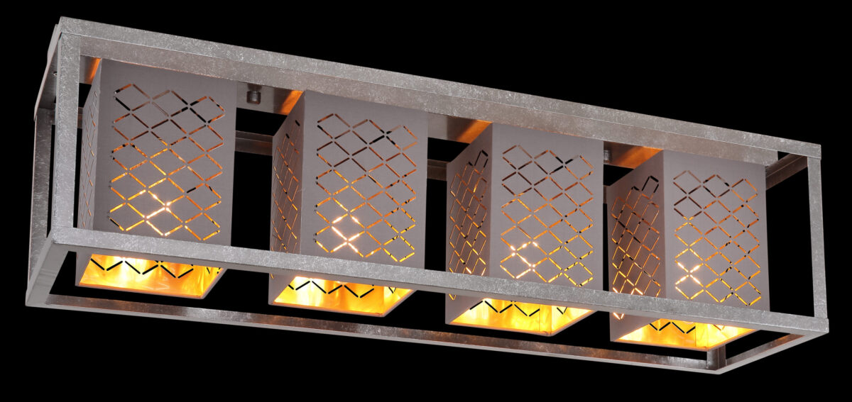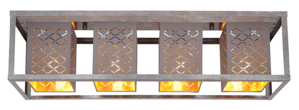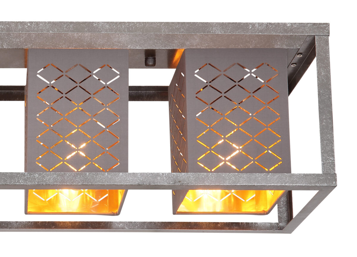 Ova plafonska lampa iz serije Thomas (75×20 cm) je prekrasan dodatak vašem enterijeru. Plafonska lampa od 22,5 cm sastoji se od metalnog okvira srebrne boje, koji je opremljen sa četiri pravokutna tekstilna sjenila s linearnim perforacijama sivo zatamnjenim izvana i zlatnim iznutra. Možete ih opremiti sa E27 sijalicama po vašem izboru, što vam daje mogućnost da individualno odredite boju svjetla i svjetlinu. Sa drugim modelima iste serije možete stvoriti moderan ambijent u svoja četiri zida.