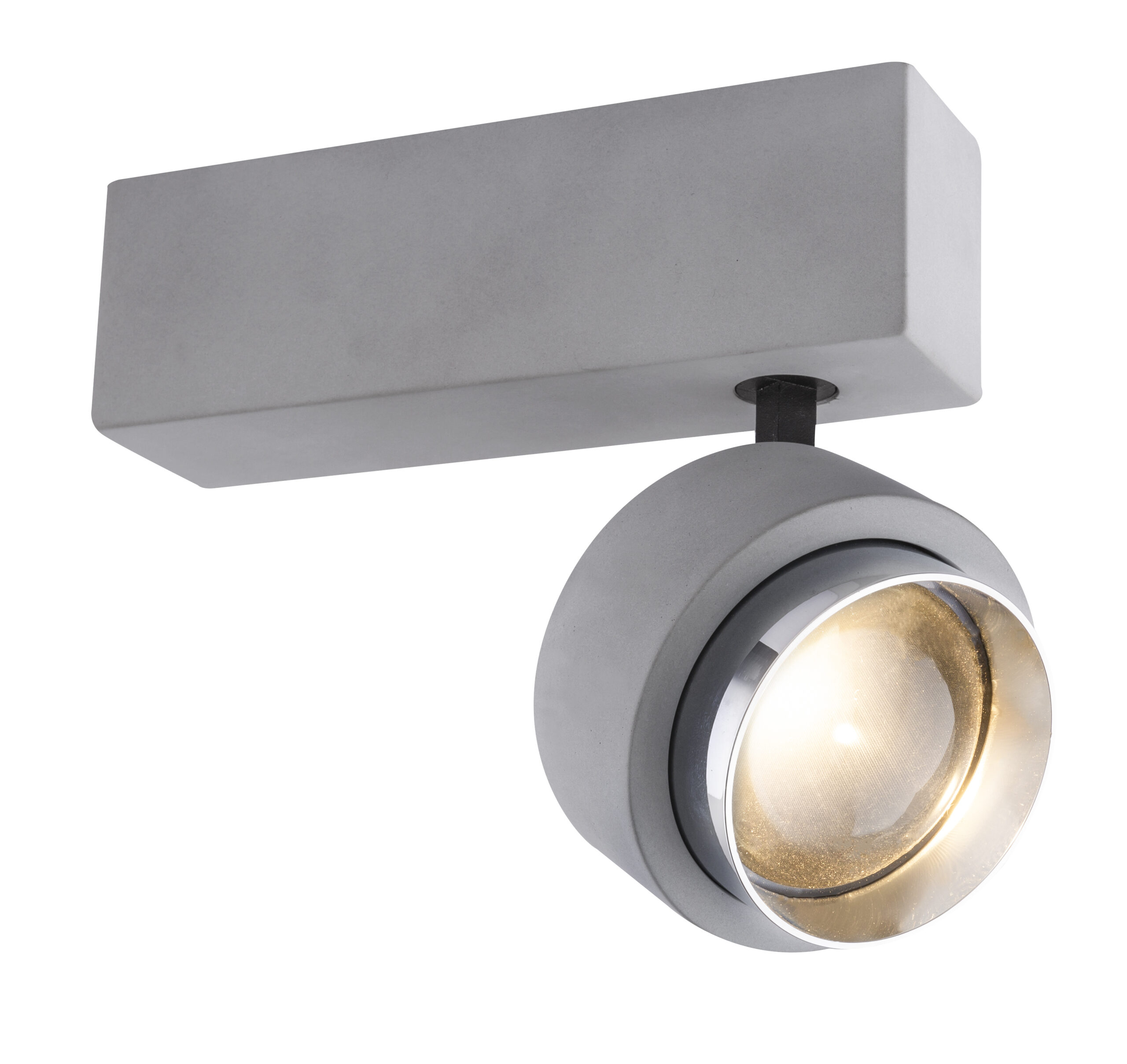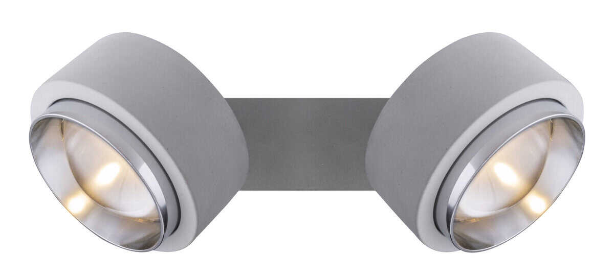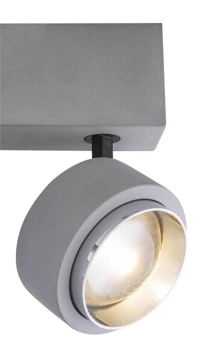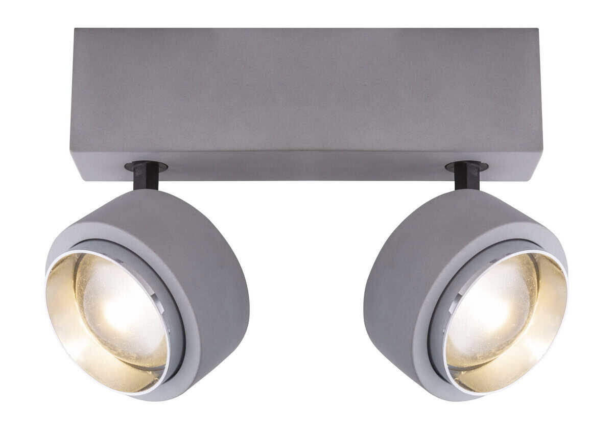Diese Deckenleuchte bietet eine Kombination aus Beton und Chrom. Diese Deckenlampe punktet mit ihrem originellen Design. Die zwei dreh- und schwenkbaren Strahler erfreuen mit ihrem runden Design befestigt auf einer rechteckigen Basis. Kombinacija aus runden und eckigen Elementen dieser Deckenlampe machen das Erleuchten mit zwei inkludierten 10 Watt LED Leuchtmittel zu einem Erlebnis. Diese Deckenleuchte leistet rund 800 Lumen, welche durch die angenehm neutralen 3000 Kelvin jeden Raum mit wunderbarer Helligkeit erstrahlen lassen. Durch andere Modelle dieser Serie können Sie das Bild Ihres Wohnraums weiter verschönern.