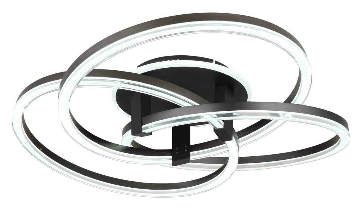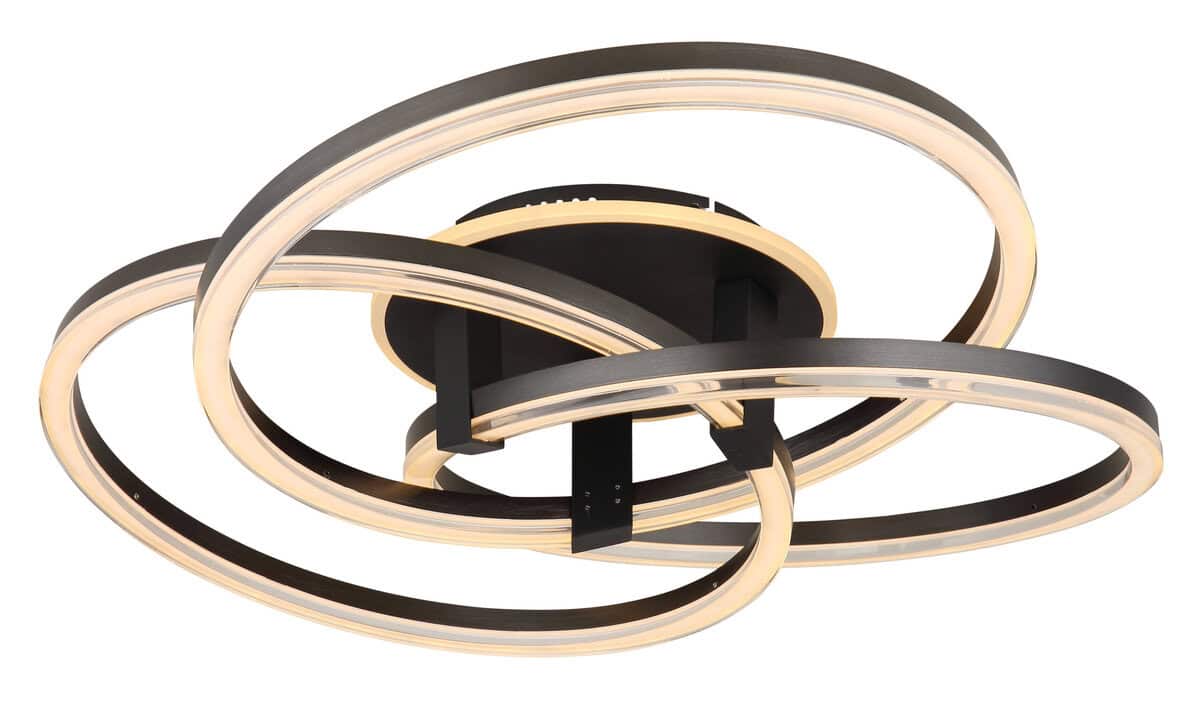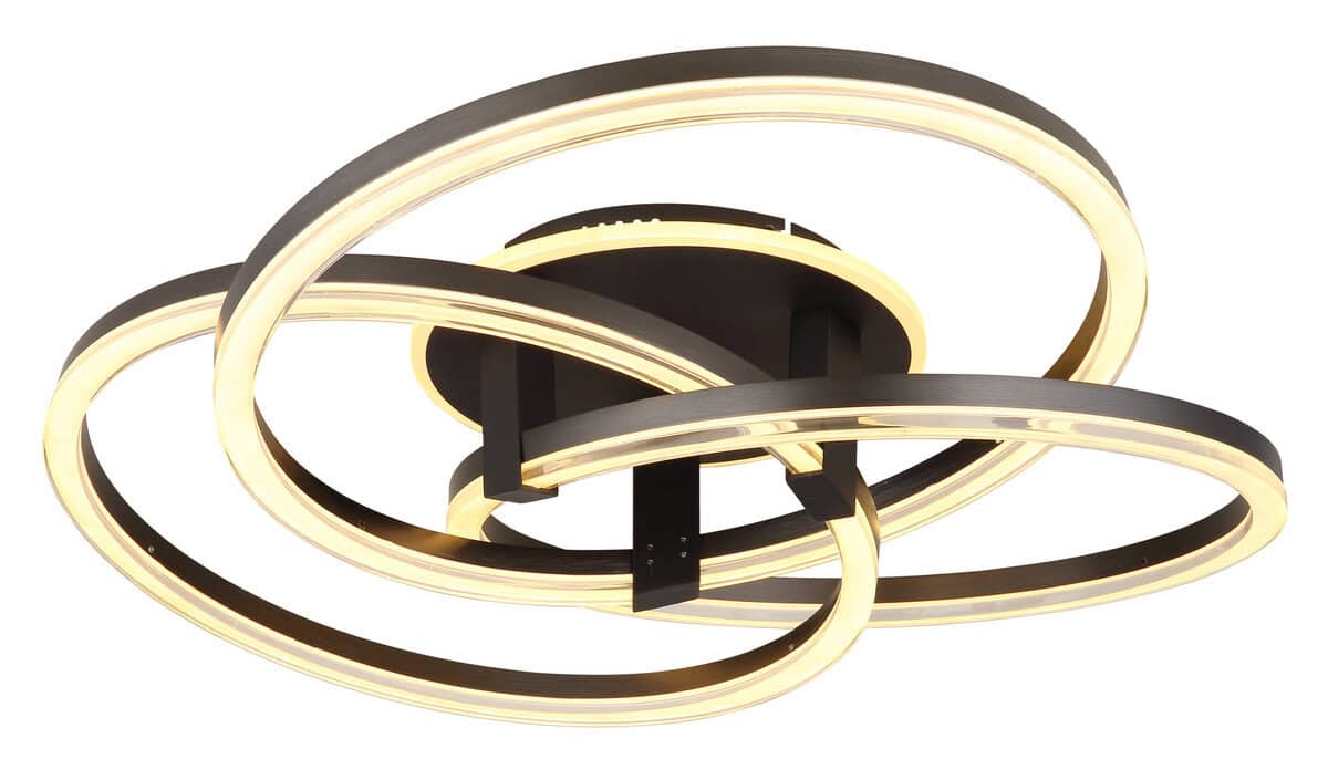 Plafonska lampa TRIST kombinuje moderan dizajn sa praktičnom funkcionalnošću u elegantnom okruglu. Sa tri raspoređena prstena završena u elegantnom antracit mat finišu, ova lampa donosi svjetlost i dizajn u vaše sobe. Metalno kućište i sjenilo od mat eloksiranog aluminija i prozirnog, opalnog akrila osiguravaju ujednačeno i ugodno osvjetljenje. Sa prečnikom od 780 mm i impresivnom snagom lumena od 3900, TRIST plafonska lampa nudi i velikodušnu svetlost i fleksibilnost. Integrirani daljinski upravljač omogućava jednostavnu kontrolu funkcije zatamnjivanja, fiksiranje boja i korištenje funkcija memorije i noćnog svjetla. LED tehnologija nudi temperaturu boje od 2700K do 6000K, tako da možete podesiti svjetlo po potrebi. TRIST plafonska lampa je savršen izbor za moderne životne i radne prostore.