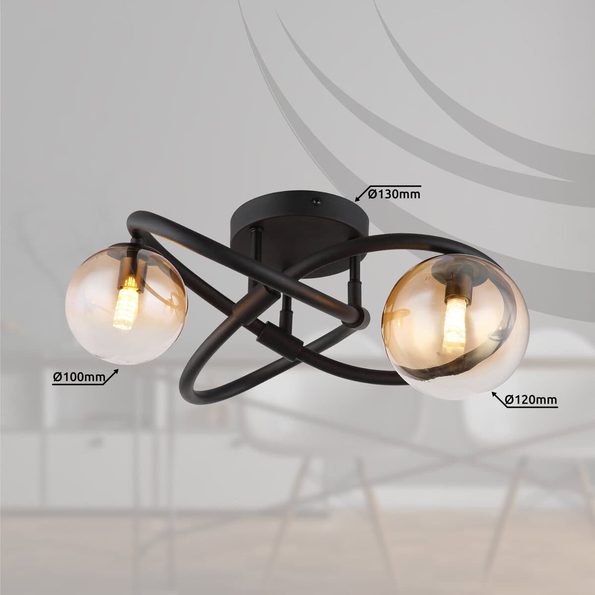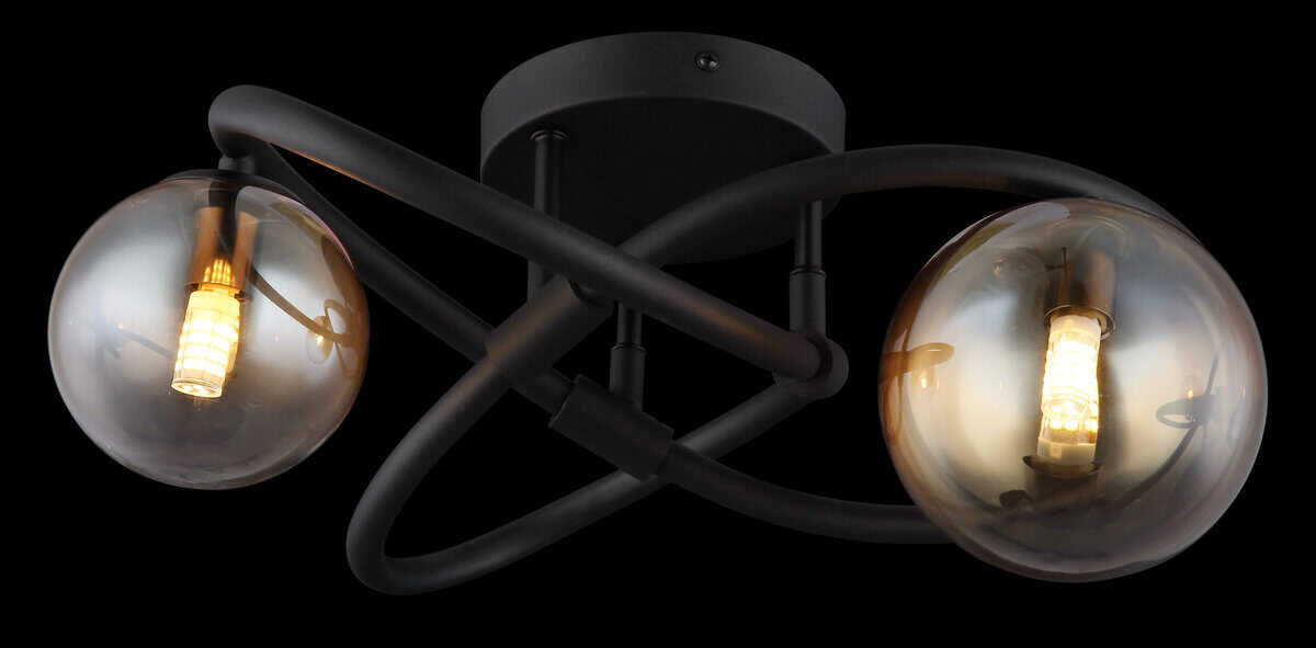 Zakrivljena plafonska lampa sa različitim staklenim sferama je moderan i elegantan rasvetni element za svaku prostoriju. Telo lampe je izrađeno od mat crnog metala, što joj daje otmjen izgled. Zakrivljena nijansa izrađena je od prozirnog stakla u jantarnoj boji sa blagim prelivom. Ovaj dizajn plafonskoj lampi daje zanimljiv i individualan izgled. Sa prečnikom od 410 mm i snagom od 3,5 W, svetiljka proizvodi svetlosnu snagu od 290 lumena. Temperatura boje rasvjete je 3000K, što stvara ugodnu i toplu atmosferu u prostoriji. Ova zakrivljena plafonska lampa sa staklenim sferama nije samo privlačna, već je i moderan način da svom domu dodate moderan štih.