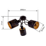 Posebno lijepa stropna lampa TUNNO odlikuje se dizajnom i prekrasnim svjetlom. Tri okrugle (Ø40cm) visoke 21cm i sa ukrasnim perforacijama za tekstil u crno-zlatnoj boji imaju tri E14 utičnice, koje vam omogućavaju da sami odredite izvor svjetlosti, a time i intenzitet svjetlosti i boju svjetla (maks. 15W). Zbog uštede energije i dugovečnosti preporučujemo LED lampe. Drugi modeli iste serije mogli bi upotpuniti sliku u vašim sobama.