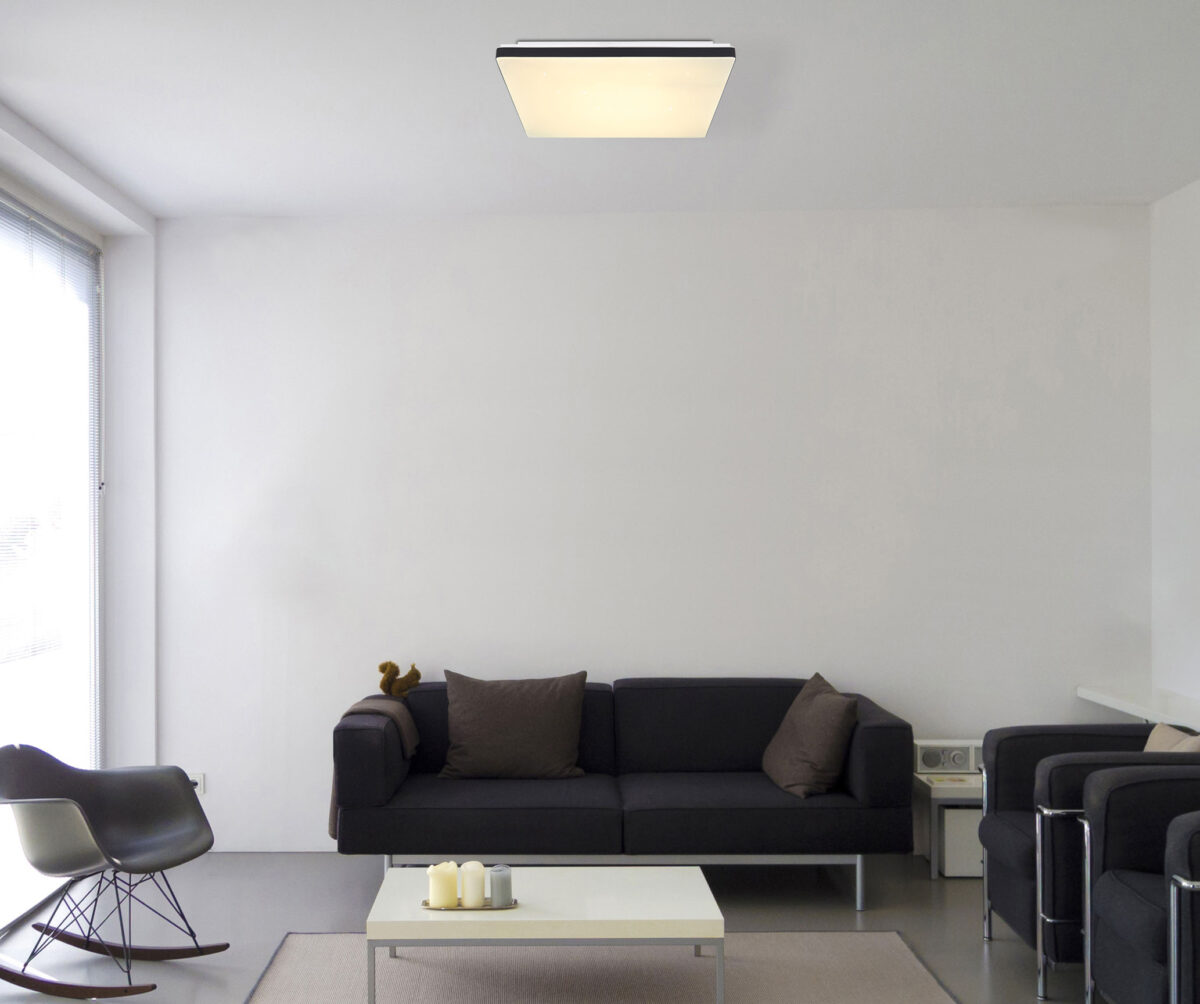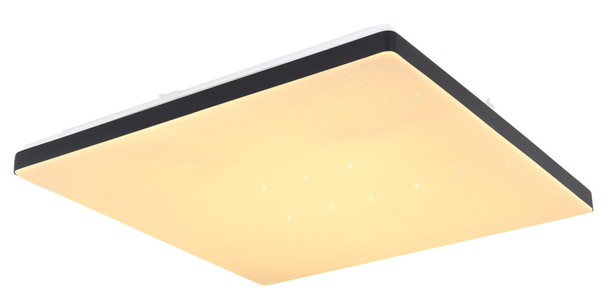 Ova plafonska lampa iz Ully serije (48,5×48,5 cm) je prekrasan dodatak vašem enterijeru. Sastoji se od crno-mat plastičnog okvira, koji je opremljen opal plastičnom pločom sa prekrasnim Sparkle dekorom. Ovo pokriva uključene LED sijalice koje pružaju 1300 lumena jakog svjetla. Uz pomoć priloženog daljinskog upravljača, ne samo da možete prigušiti plafonsko svjetlo, već i podesiti boju svjetla u nekoliko nivoa između tople i hladne bijele (2700 do 6000 Kelvina) i imati funkciju noćnog svjetla. Vrhunac je, međutim, funkcija Smart Home, svjetiljka je kompatibilna sa Smart Home i Alexa i može se upravljati glasovnim unosom. Ovom Smartlight lampom se lako može kontrolisati pomoću aplikacije Tuya Smart (Android TM/IOS).