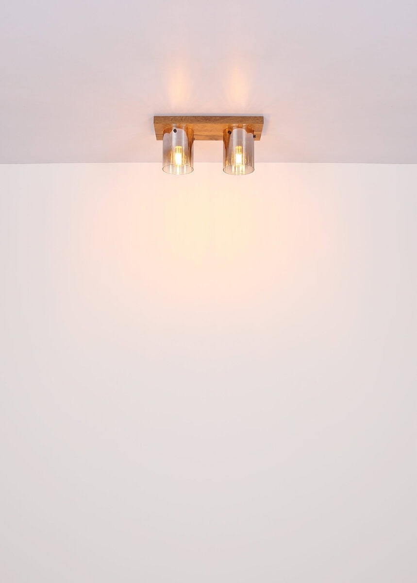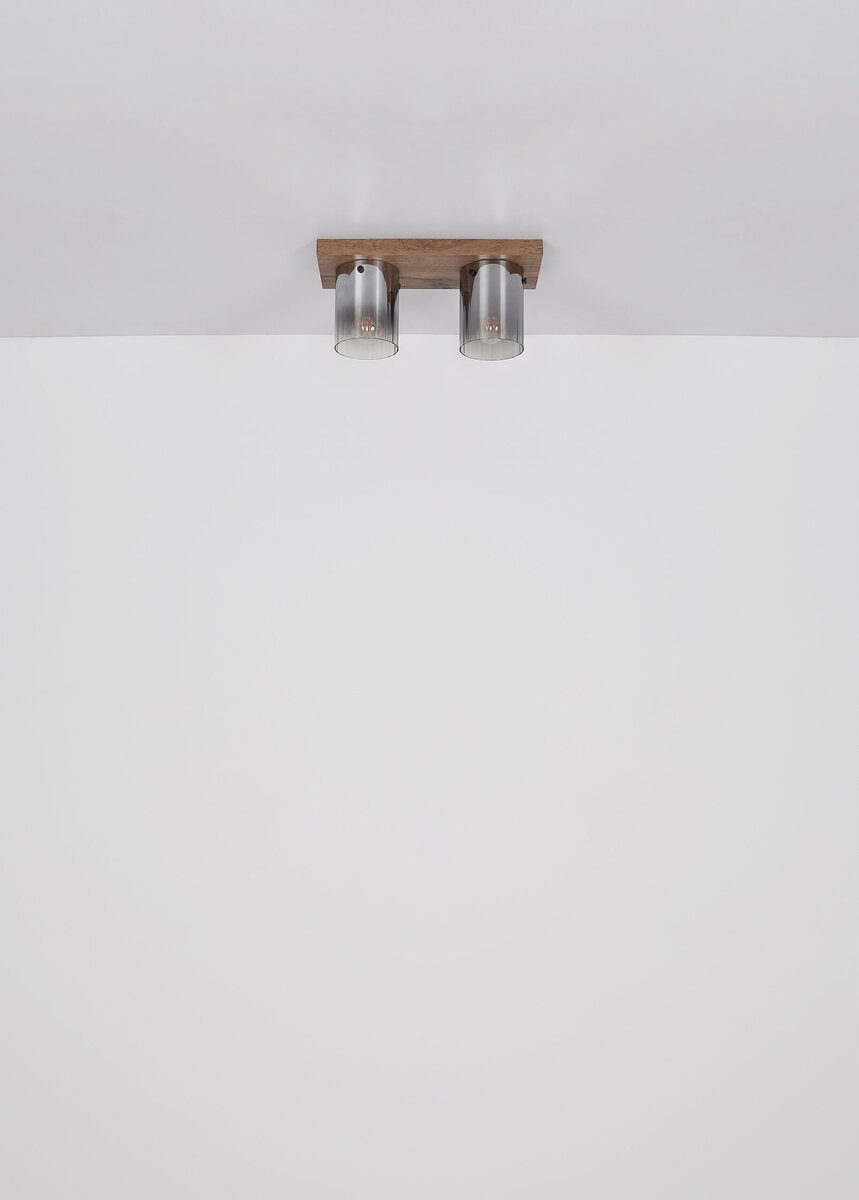 Stropna lampa UNDERWOOD pravokutnog dizajna uvjerava prozirnim staklenim cilindrom i tamnim MDF drvenim tijelom. Savršeno za vintage interijere. Pogodno za E27 sijalice (ekskluzivno).