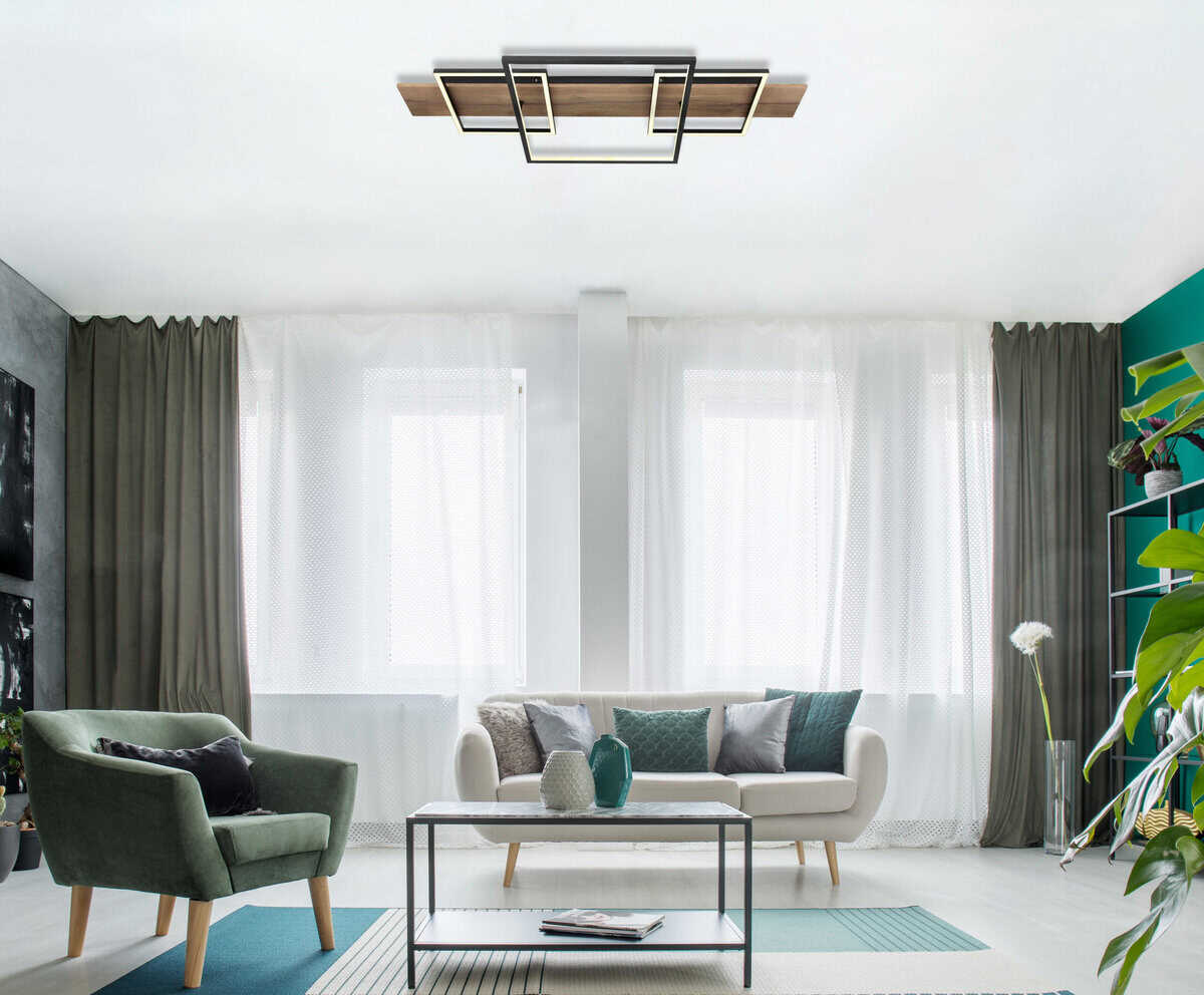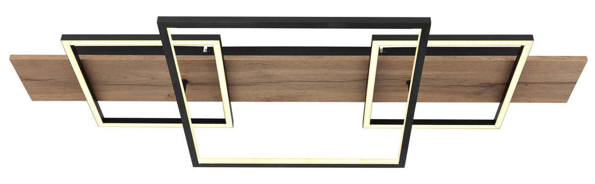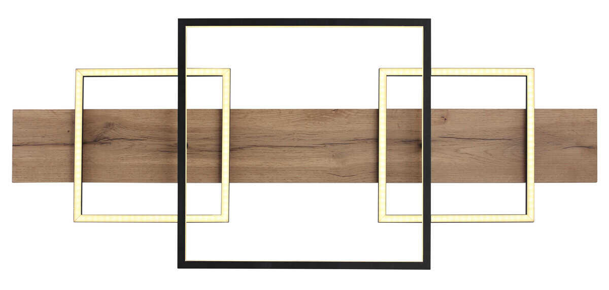 Ova moderna plafonska lampa serije VANNI je prava privlačnost u svakoj prostoriji. Crni mat metalni ormarić i MDF sa izgledom drveta, kao i crni mat aluminijum i opal plastika rezultiraju skladnim i modernim dizajnom. Plafonska lampa ima nekoliko koraka kojima se može upravljati preko zidnog prekidača. Pomoću memorijske funkcije možete vratiti posljednji postavljeni nivo svjetline. Lampa nudi tri nivoa svjetline: 100%, 40% i 10%. Plafonska lampa je dimenzija DxŠxV: 950x400x100mm i sastoji se od velikog kvadrata dimenzija 40x40cm i manjeg kvadrata dimenzija 25x25cm. Svetiljka uključuje LED 32W 230V, 4200lm izvor i 2000lm izlaz, 3000K, tako da dobijate jako i prijatno osvetljenje.