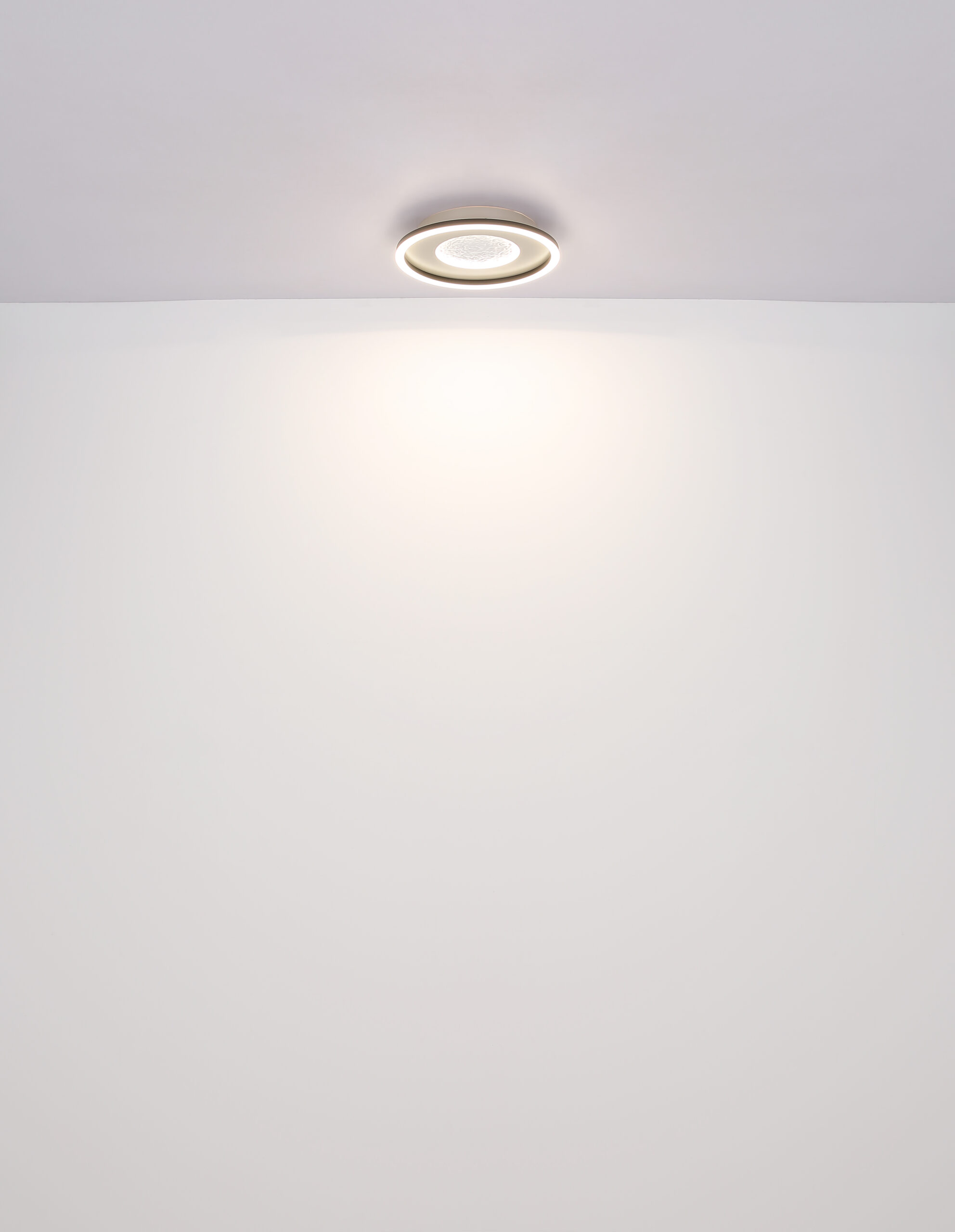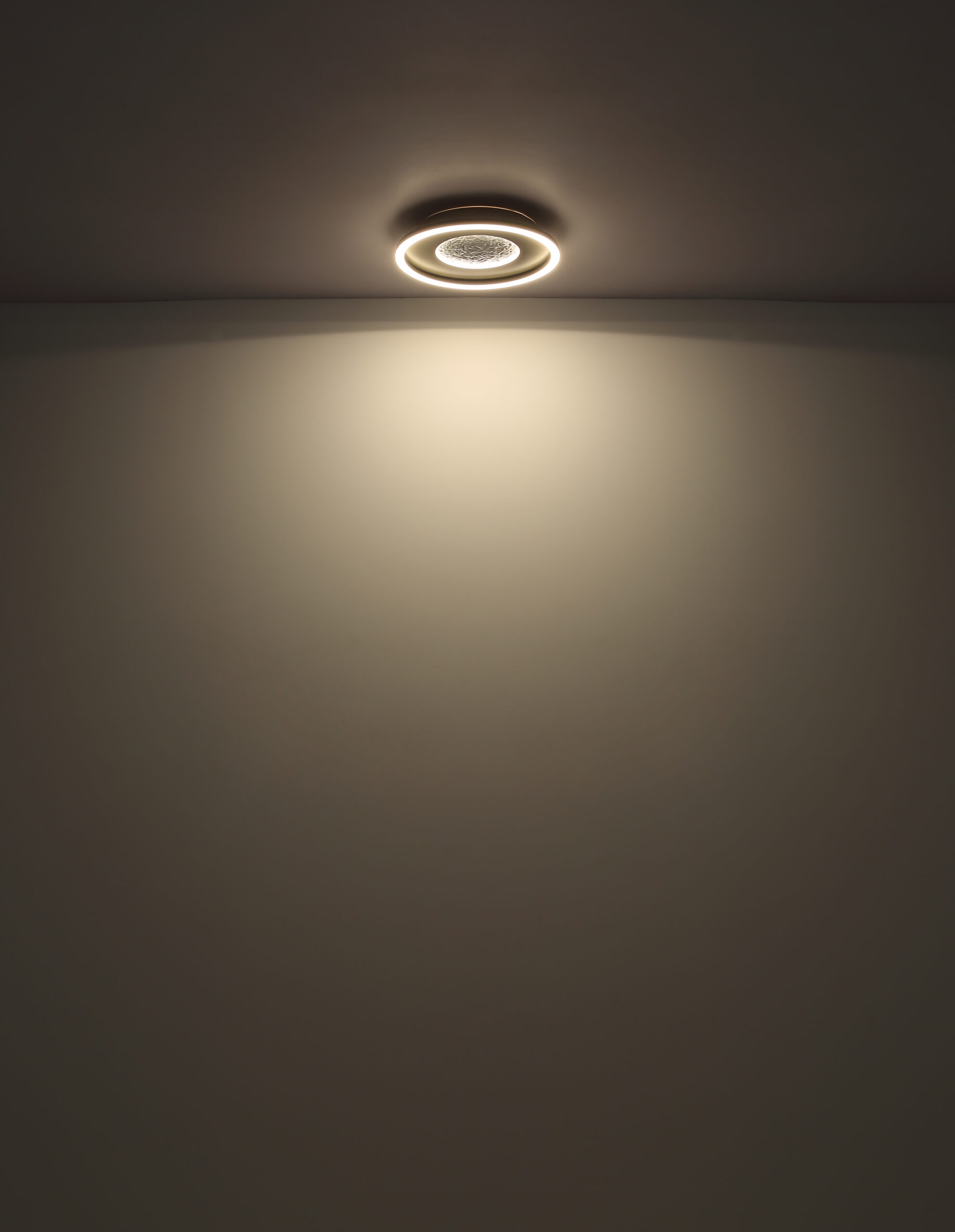 XARU plafonska lampa okruglog dizajna nudi moderno svetlosno rešenje sa kućištem od belog i sivog brušenog metala i sjenilom od akrila i plastike u beloj boji. Ova rasvjetna lampa s mogućnošću zatamnjivanja nudi svjetlosni izlaz od 1100 lumena sa CCT od 3000 K do 6500 K. Funkcija memorije vam omogućava da sačuvate željeno svjetlosno raspoloženje i pruža individualno podesivo osvjetljenje. Idealno za sobe kojima je potreban moderan i funkcionalan izvor svjetlosti.