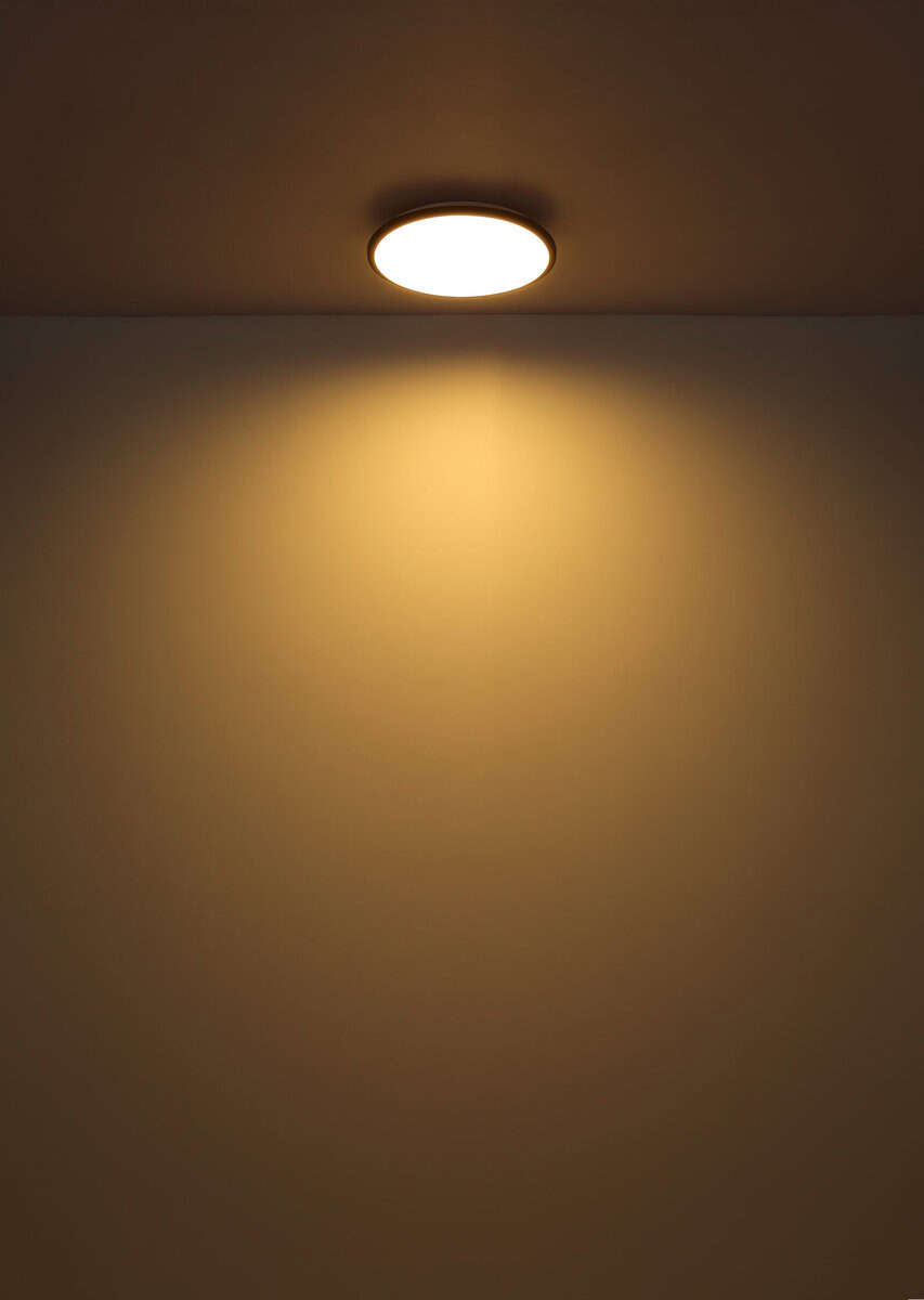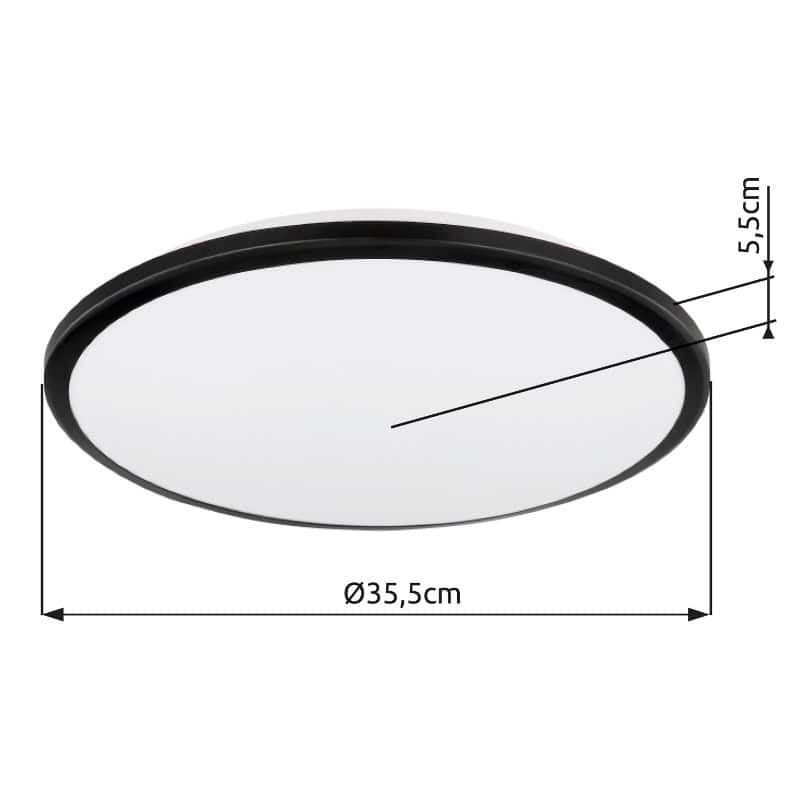 Plafonska lampa je izrađena od crne mat plastike i opal plastike, raspoređenih u prečniku od 350 mm. Svetiljka se isporučuje sa LED sijalicom snage 18 W i naponom od 230 V. Izvor svjetlosti ima svjetlinu od 2050 lm i izlaznu snagu od 950 lm sa temperaturom boje od 3000K. Ova plafonska lampa privlači poglede i idealna je za moderne životne prostore. Kombinacija crne mat plastike i opal plastike daje lampi elegantan izgled. Sa LED lampom štedite energiju i štitite životnu sredinu. Plafonska lampa je prečnika 350 mm i visine 55 mm. Idealan je za sobe sa niskim plafonima ili kao centralni element u prostoriji. Svjetlina LED lampe pruža ugodno osvjetljenje koje prostoriju okupa toplim svjetlom.
