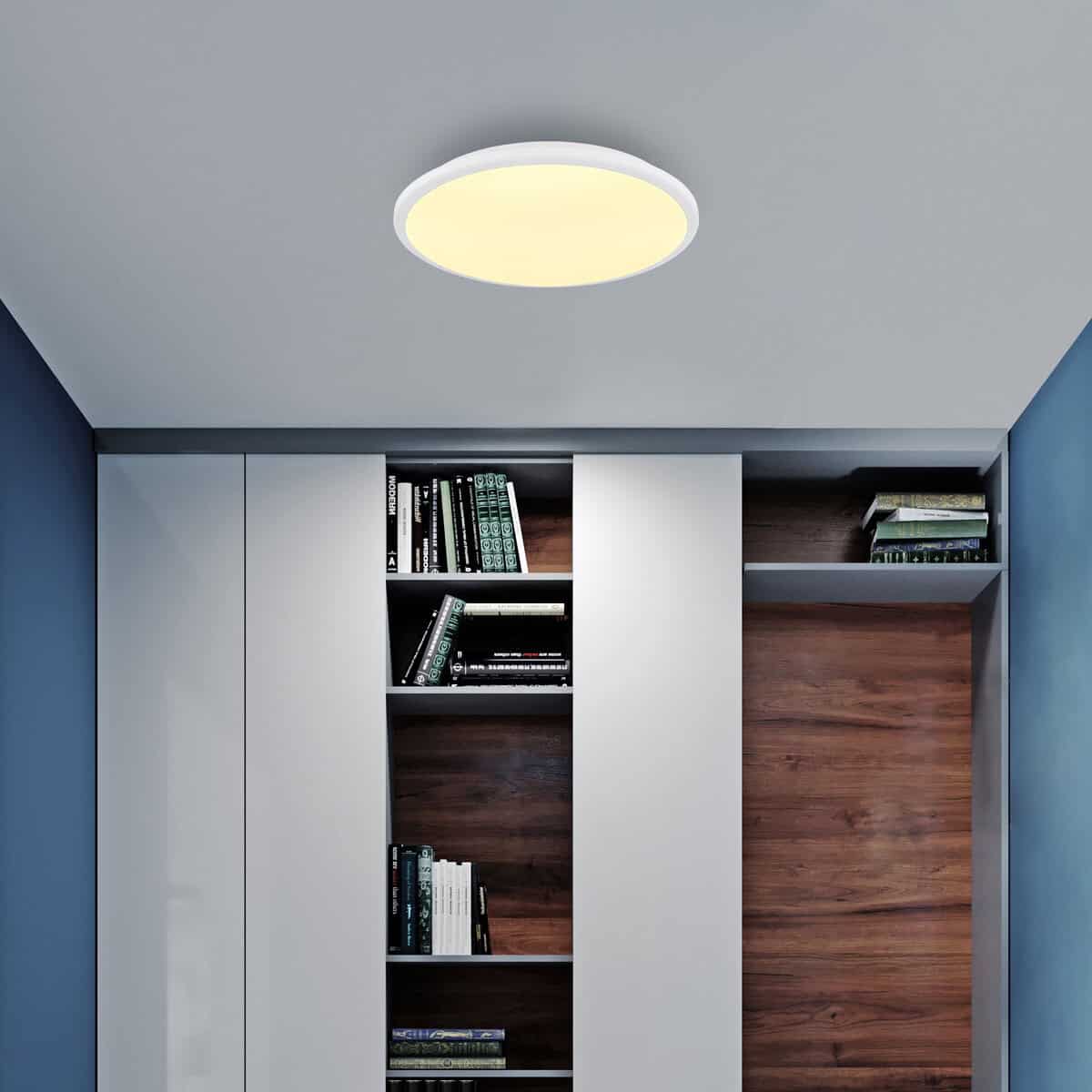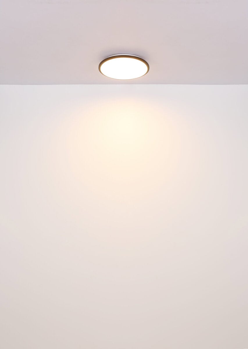 Plafonska lampa je izrađena od bijele mat plastike i opal plastike, raspoređenih u prečniku od 350 mm. Svetiljka se isporučuje sa LED sijalicom snage 18 W i naponom od 230 V. Izvor svjetlosti ima svjetlinu od 2050 lm i izlaznu snagu od 950 lm sa temperaturom boje od 3000K. Ova plafonska lampa privlači poglede i idealna je za moderne životne prostore. Kombinacija bijele mat plastike i opal plastike daje lampi elegantan izgled. Sa LED lampom štedite energiju i štitite životnu sredinu. Plafonska lampa je prečnika 350 mm i visine 55 mm. Idealan je za sobe sa niskim plafonima ili kao centralni element u prostoriji. Svjetlina LED lampe pruža ugodno osvjetljenje koje prostoriju okupa toplim svjetlom.