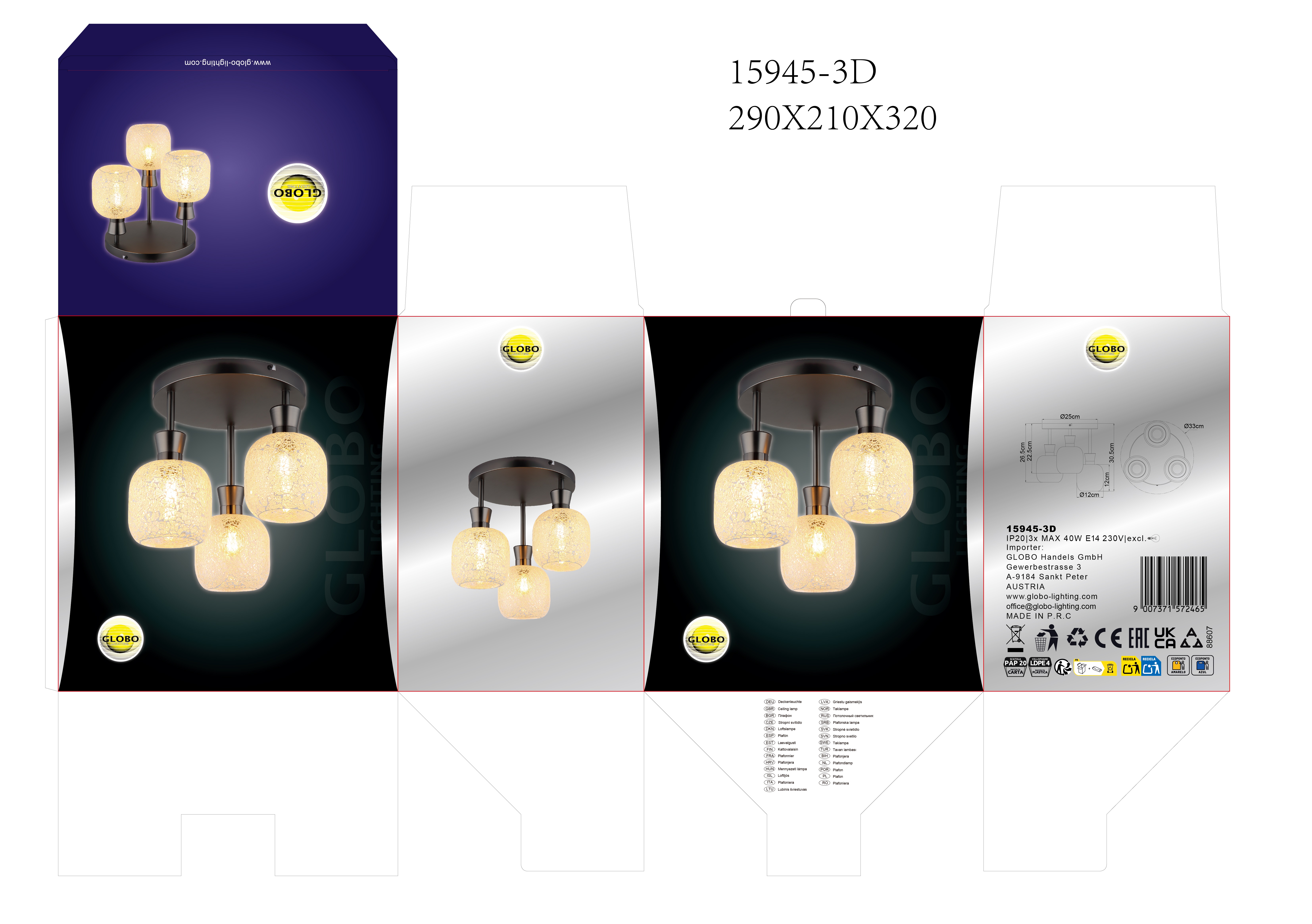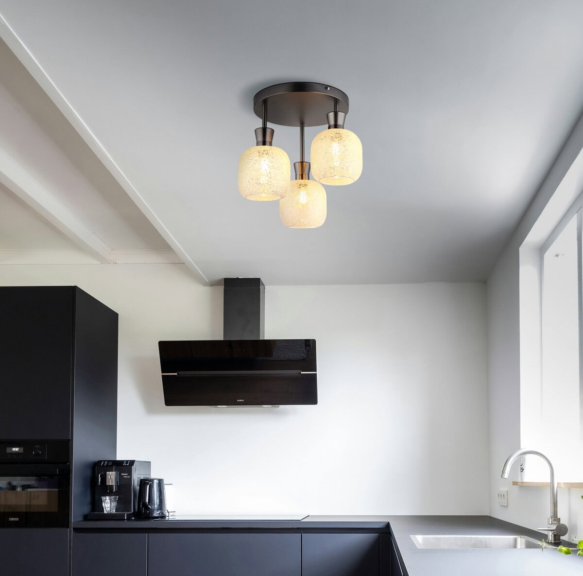 METAL CRNO-HROM MAT plafonska lampa kombinuje moderan dizajn sa daškom elegancije. Okruglo kućište od mat crne i hromirane daje lampi savremen izgled koji se savršeno uklapa u različite stilove enterijera. Okrugla stakla u mozaičkom dizajnu od prozirnog stakla stvaraju fascinantne refleksije svjetlosti i doprinose posebnoj atmosferi u svakoj prostoriji. Sa držačem lampe za 3x E14 (isključujući sijalice), ova lampa nudi dovoljnu osvetljenost za postavljanje udobnih akcenta, kao i za pružanje funkcionalnog svetla. Idealan za upotrebu u dnevnim sobama, hodnicima ili kancelarijama, donosi ono određeno u vaše sobe. Metalno kućište i stakleni mozaik sjenila daju atraktivan kontrast i čine ovu plafonsku lampu pravom privlačnom za oči u vašem domu. Savršeno za dodavanje modernog, ali elegantnog akcenta vašem interijeru.