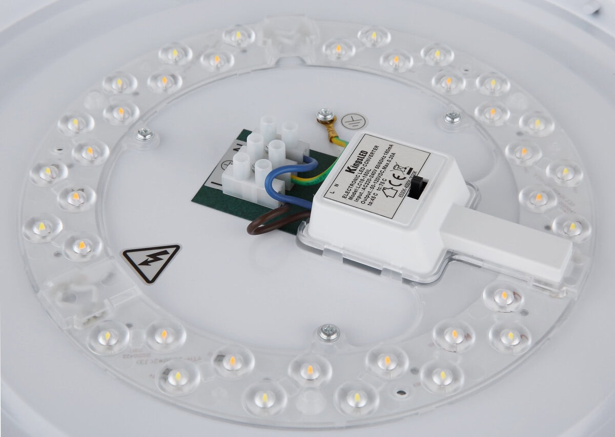 Okrugla plafonska lampa CALLIE impresionira svojim modernim dizajnom i visokokvalitetnom izradom. Ravno kućište od bijelog mat obojenog metala daje svjetiljci jasan i bezvremenski izgled. Elegantan hromirani prsten uokviruje opal plastičnu nijansu, dodajući stilski naglasak. Sa prečnikom od 380 mm, lampa je idealna za dnevne sobe, spavaće sobe ili radne prostore. Integrirani LED modul isporučuje svjetlosni izlaz od 1500 lumena – svijetao, ali energetski efikasan. Temperatura boje (CCT) se može lako podesiti preko kliznog prekidača na bazi koji se može popraviti u tri koraka: od tople bijele (3000 K) preko neutralne bijele do dnevne svijetlo bijele (6000 K). CALLIE kombinira dizajn i udobnost i osigurava ugodnu, ravnomjernu distribuciju svjetlosti. Lampa dolazi sa uključenom LED diodom i odmah je spremna za upotrebu.