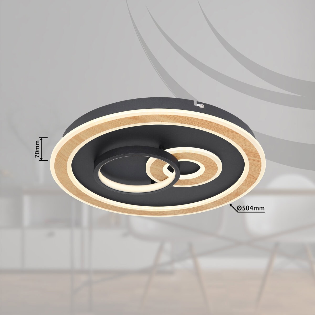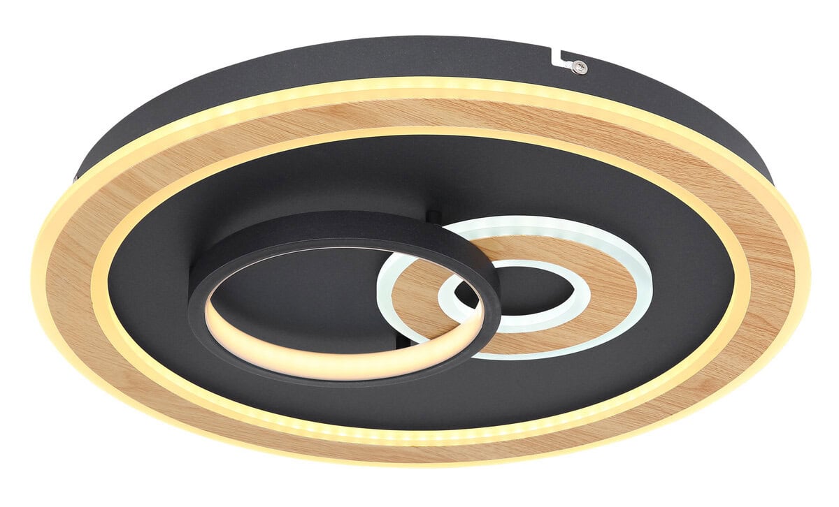 Okrugla plafonska lampa CHESSY u dizajnu pametne kuće impresionira inovativnim konceptom i modernom tehnologijom. Kućište od crnog mat metala i tamno smeđa metalna nijansa sa akrilnim opalom daju atraktivan izgled. Dva pričvršćena prstena daju lampi poseban element dizajna. Sa funkcijom zatamnjivanja, popravljivim bojama i memorijskom funkcijom, CHESSY plafonska lampa nudi maksimalnu fleksibilnost. Zahvaljujući priloženom daljinskom upravljaču, osvetljenje se može lako kontrolisati. Svjetiljka je kompatibilna sa sistemima pametne kuće i stoga se može integrirati u umreženi dom. Sa prečnikom od 500 mm, snagom od 50 W i izlaznom snagom od 2200 lumena, CHESSY nudi svetlo i raznovrsno osvetljenje sa temperaturom boje od 2700K do 6500K. Ova plafonska lampa je idealan izbor za one koji cene moderan dizajn i inovativnu tehnologiju.