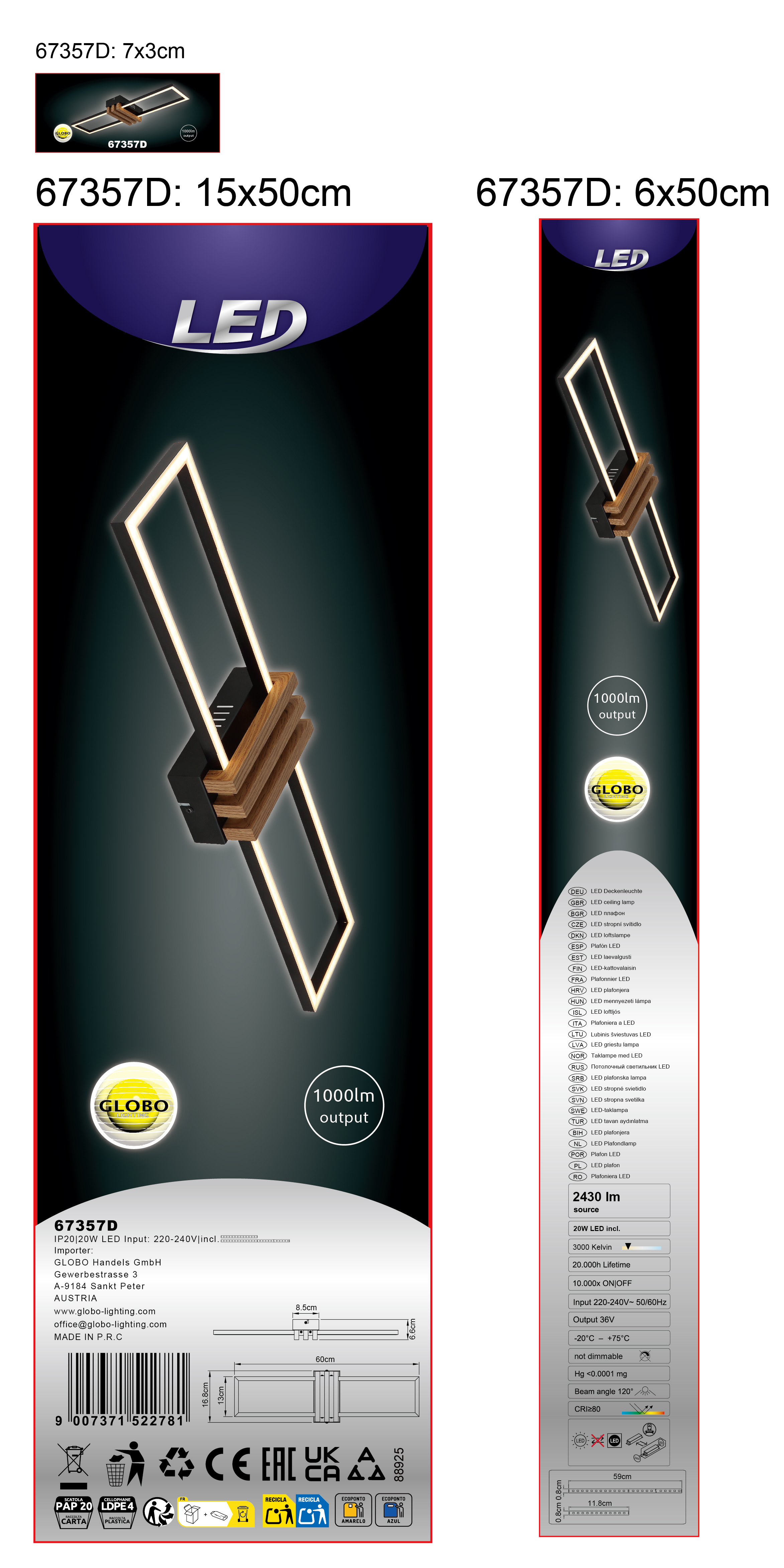 Pravougaona plafonska lampa DAKARI I impresionira svojim modernim dizajnom, koji kombinuje klasične elemente sa daškom prirode. Tijelo izrađeno od mat crnog metala i tamnog aluminija s izgledom drveta osiguravaju moderan, elegantan izgled koji se savršeno uklapa u moderne životne prostore. Sjenilo od crne, mat ABS i opalno bijele plastike osigurava ravnomjernu raspodjelu svjetla i ugodnu atmosferu. Sa temperaturom boje od 3000 K, integrisana LED rasvjeta pruža toplo, privlačno svjetlo koje uranja vaše sobe u ugodnu atmosferu. DAKARI I nije samo funkcionalan, već i pravi privlačan pogled, postavljajući moderne i bezvremenske akcente kroz kombinaciju metalnih i prirodnih materijala. Idealno za dnevne sobe, hodnike ili spavaće sobe – plafonska lampa koja unosi stil i udobnost u vaš dom.