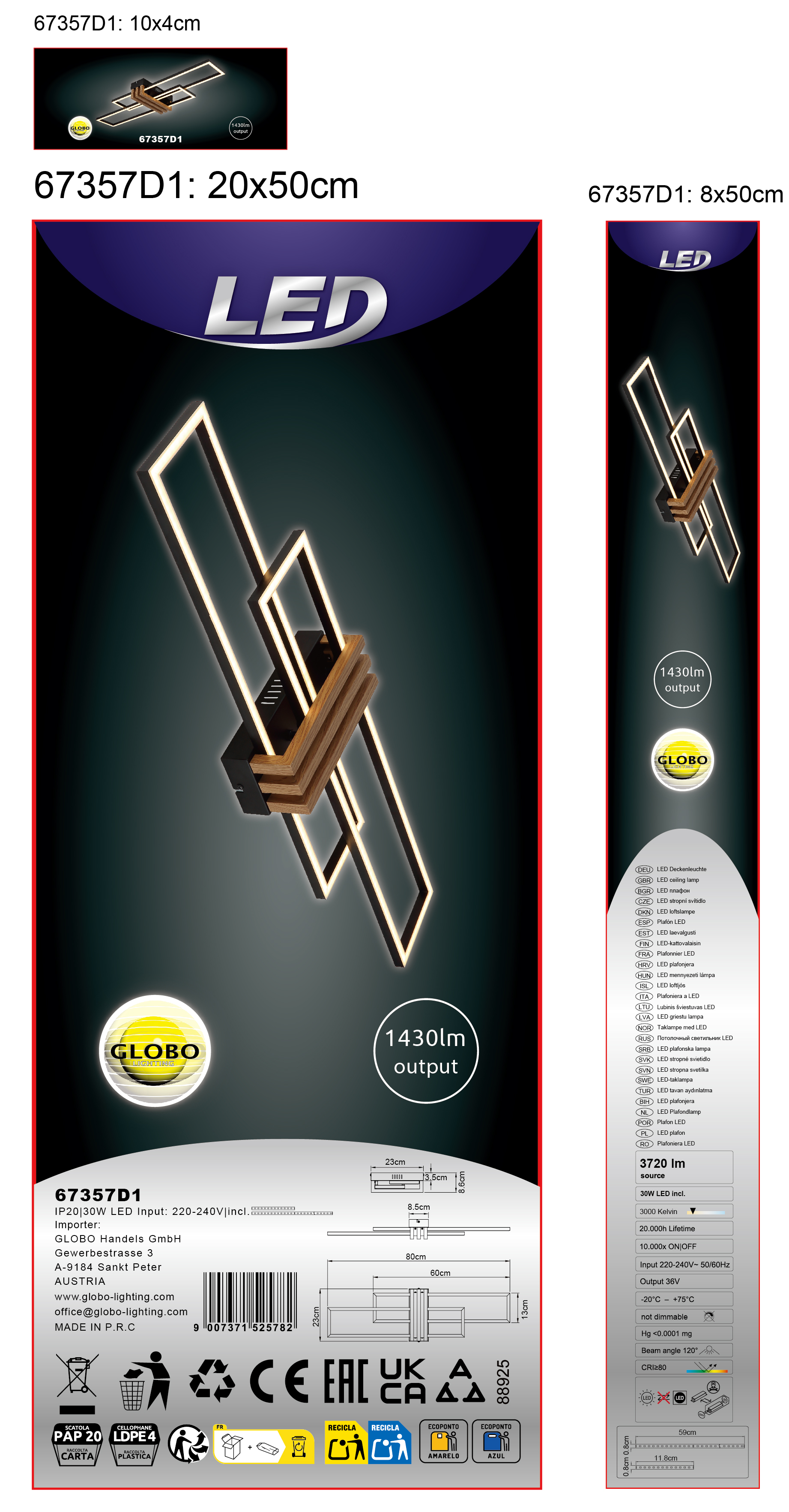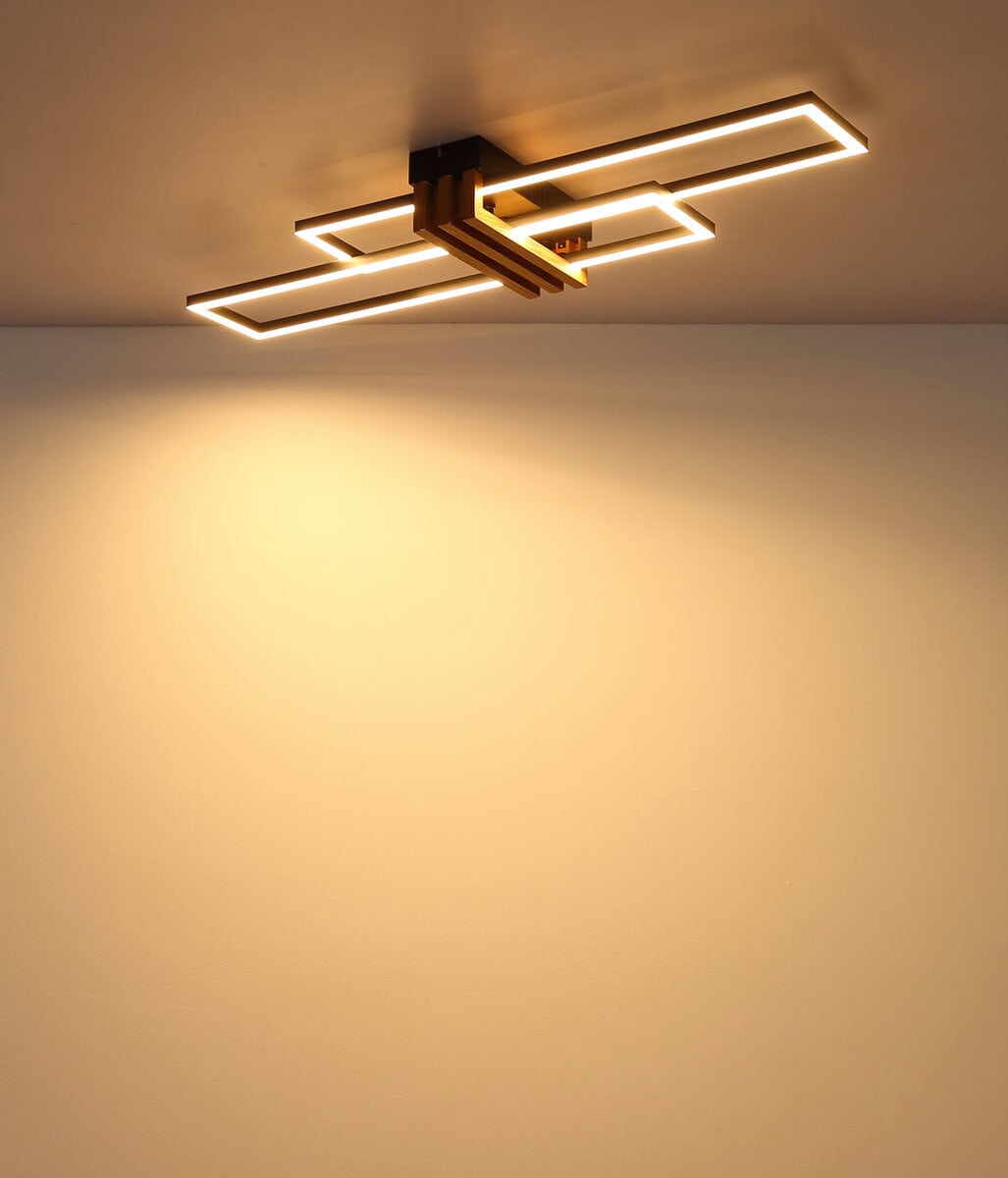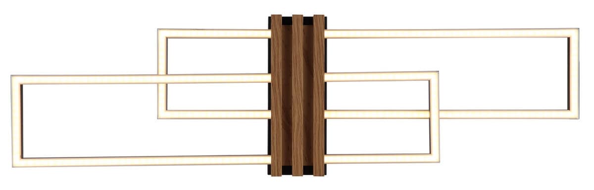 Pravougaona plafonska lampa DAKARI I oduševljava svojim modernim dizajnom, koji oduševljava kombinacijom dva pravougaonika raspoređena jedan iznad drugog i elegantnog drvenog dekora. Tijelo izrađeno od mat crnog metala i tamnog aluminija s izgledom drveta stvara jasan, ali topao izgled koji se može integrirati u mnoge koncepte prostorija. Sjenilo izrađeno od crne, mat ABS i opalno bijele plastike osigurava ravnomjernu distribuciju svjetlosti, što osigurava ugodno osvjetljenje. Sa temperaturom boje od 3000 K, integrisana LED rasvjeta pruža toplo, ugodno svjetlo, idealno za dnevne sobe, hodnike ili spavaće sobe. DAKARI I kombinuje moderan dizajn sa prirodnim elementima, donoseći funkcionalnost i stil u vaše sobe. Savršen izbor za postavljanje akcenta i stvaranje ugodne atmosfere.