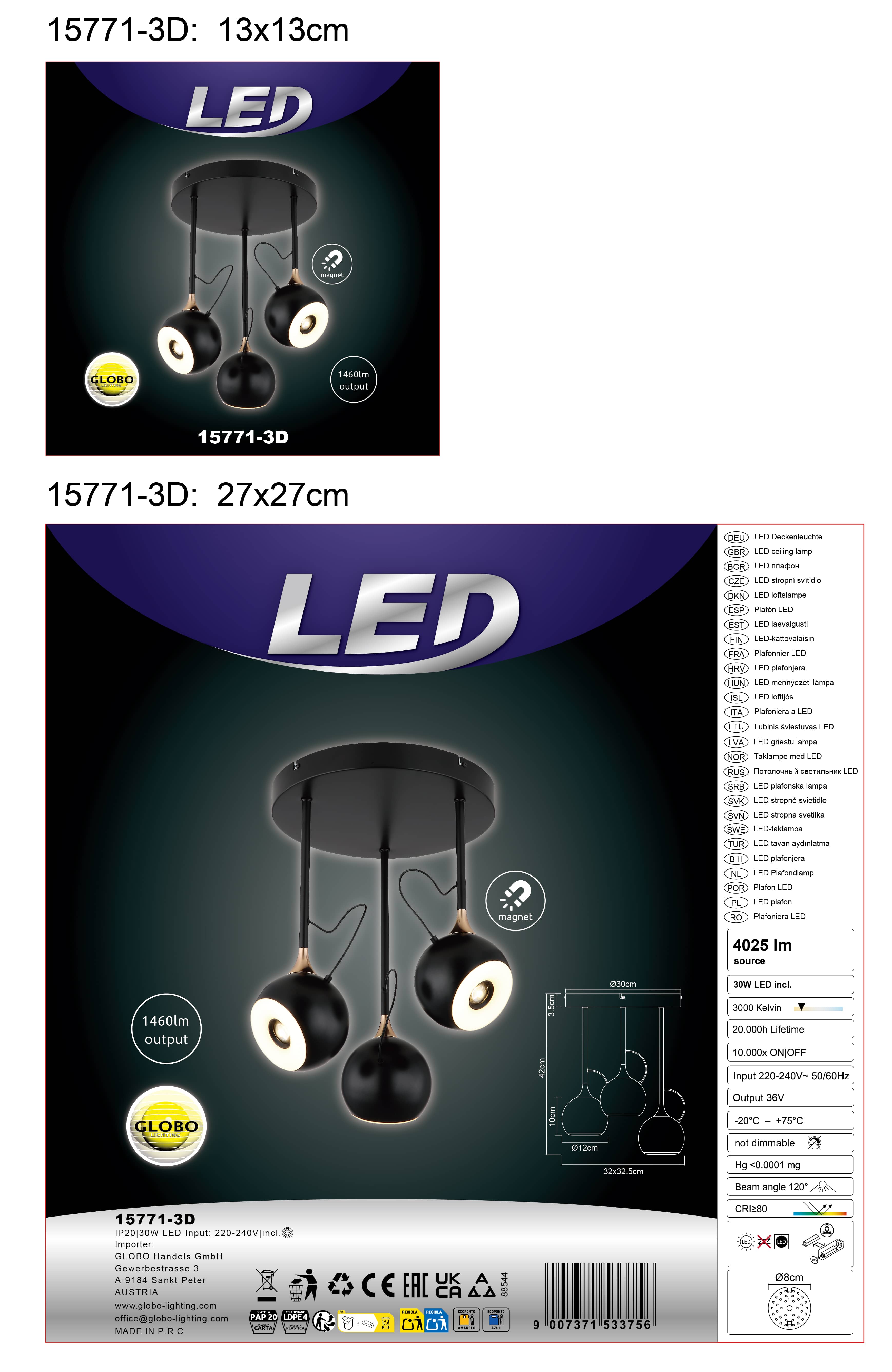 Ova izvanredna plafonska lampa impresionira sa tri okrugla svetlosna tela koja se mogu individualno poravnati zahvaljujući integrisanim magnetima. Telo izrađeno od mat crnog metala i crno-hrom elemenata daju lampi elegantan, moderan izgled. Sjenila izrađena od metala zlatne boje u kombinaciji s opalnim akrilom stvaraju atmosfersko svjetlo i elegantan kontrast. Opremljen trajno instaliranom LED diodom (1x LED), svjetlo nudi toplo bijelo svjetlo s temperaturom boje od 3000 K – idealno za dnevni boravak ili blagovaonicu. Podesive kuglice omogućavaju fleksibilno usmjeravanje i individualno podešavanje svjetla. Visokokvalitetna kombinacija materijala i pametan sistem magneta čine ovaj privjesak ili plafonsku lampu elegantnom privlačnom za oči s visokom funkcionalnom dodanom vrijednošću. Uključujući LED, spreman je za trenutnu upotrebu i kombinuje moderan dizajn sa praktičnom prikladnošću za svakodnevnu upotrebu na najvišem nivou.
