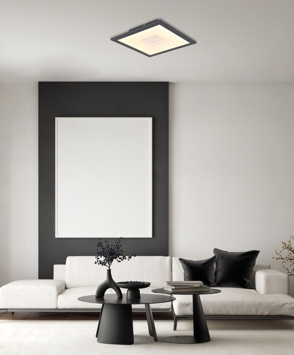 Doro plafonska lampa impresionira svojim modernim, tehničkim dizajnom i jedinstvenim 3D efektom. Kvadratna ploča od livenog aluminija s bijelom, mat površinom osigurava jednostavan, elegantan izgled koji se savršeno uklapa u svako životno ili radno okruženje. Sjenilo kombinuje opal plastični materijal sa plastikom boje dima i stvara poseban svjetlosni efekat koji stilski osvjetljava prostoriju. S veličinom od 300 mm x 300 mm, svjetlo nudi kompaktno, ali efikasno svjetlosno rješenje. Integrirana LED traka isporučuje ugodan svjetlosni tok od 700 lumena pri temperaturi boje od 3000 K, idealan za ugodno, toplo bijelo osvjetljenje. DORO plafonska lampa je štedljiv i dekorativni element koji je funkcionalan i estetski ugodan. Svjetlo dolazi sa LED diodom i može se lako integrirati u različite prostorije.
