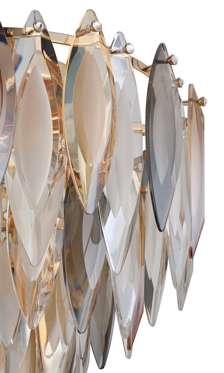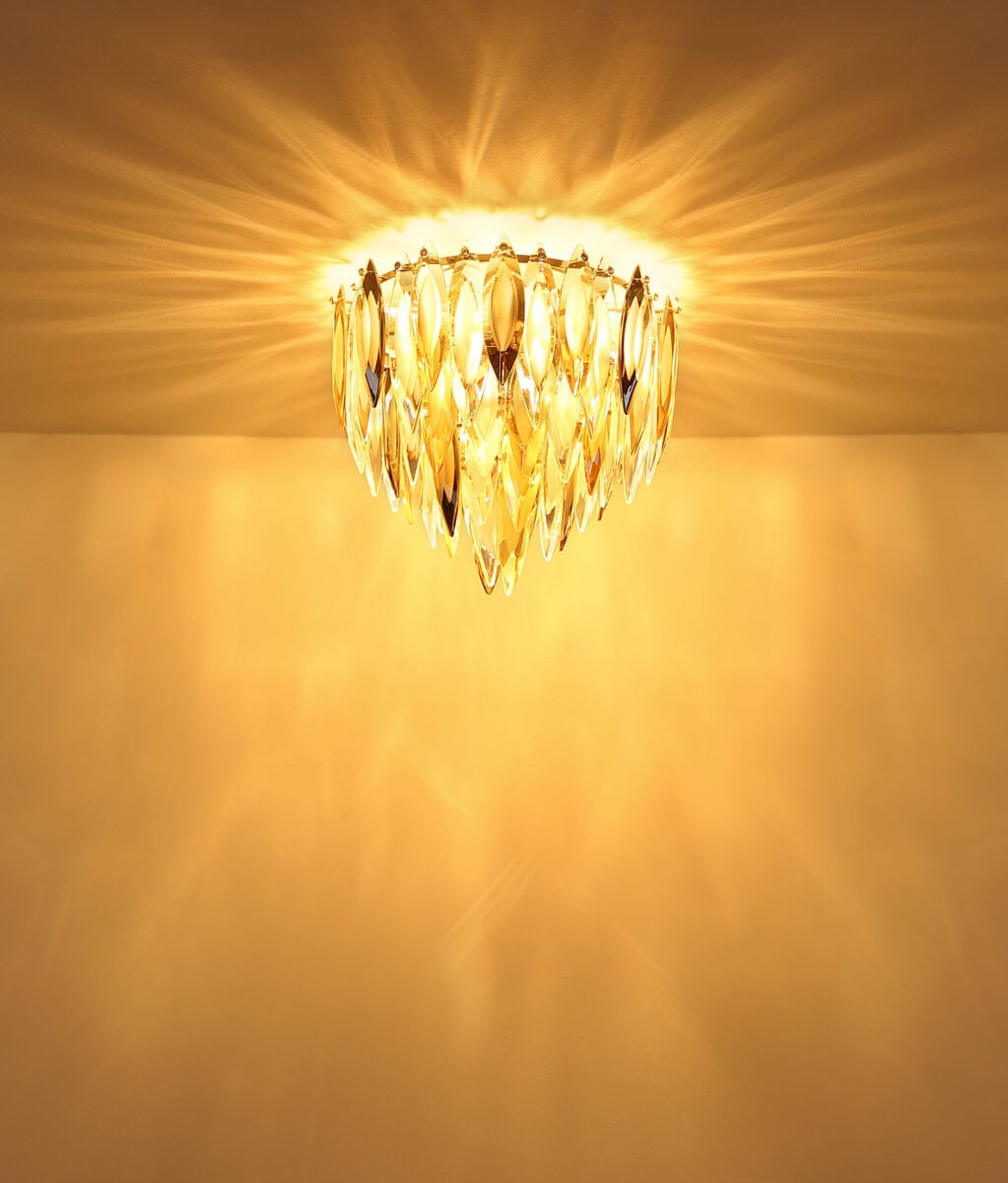 Okrugla plafonska lampa ELINOR kombinuje tradicionalnu eleganciju sa vrhunskim materijalima i prava je privlačnost za sofisticirane životne prostore. Njegovo tijelo, izrađeno od metalik zlatne boje, zrači bezvremenskom toplinom i stilom. Okrugla nijansa impresionira razrađenim kristalnim privjeskom napravljenim od visokokvalitetnih kristala K9 u dimljenim, šampanjskim i jasnim bojama koji lijepo prelamaju i blistaju svjetlošću. Sa prečnikom od 420 mm, ELINOR se savršeno uklapa u trpezarije, dnevne sobe ili reprezentativne ulazne prostore. Za lampu je potreban E14 grlo (isključeno), što vam omogućava da fleksibilno odaberete odgovarajući izvor svjetlosti. ELINOR spaja klasične oblike s visokokvalitetnom izradom, stvarajući luksuznu svjetlosnu atmosferu koja uljepšava svaku prostoriju. Idealno za ljubitelje tradicionalne rasvjete koji cijene elegantne detalje i harmonične svjetlosne efekte.
