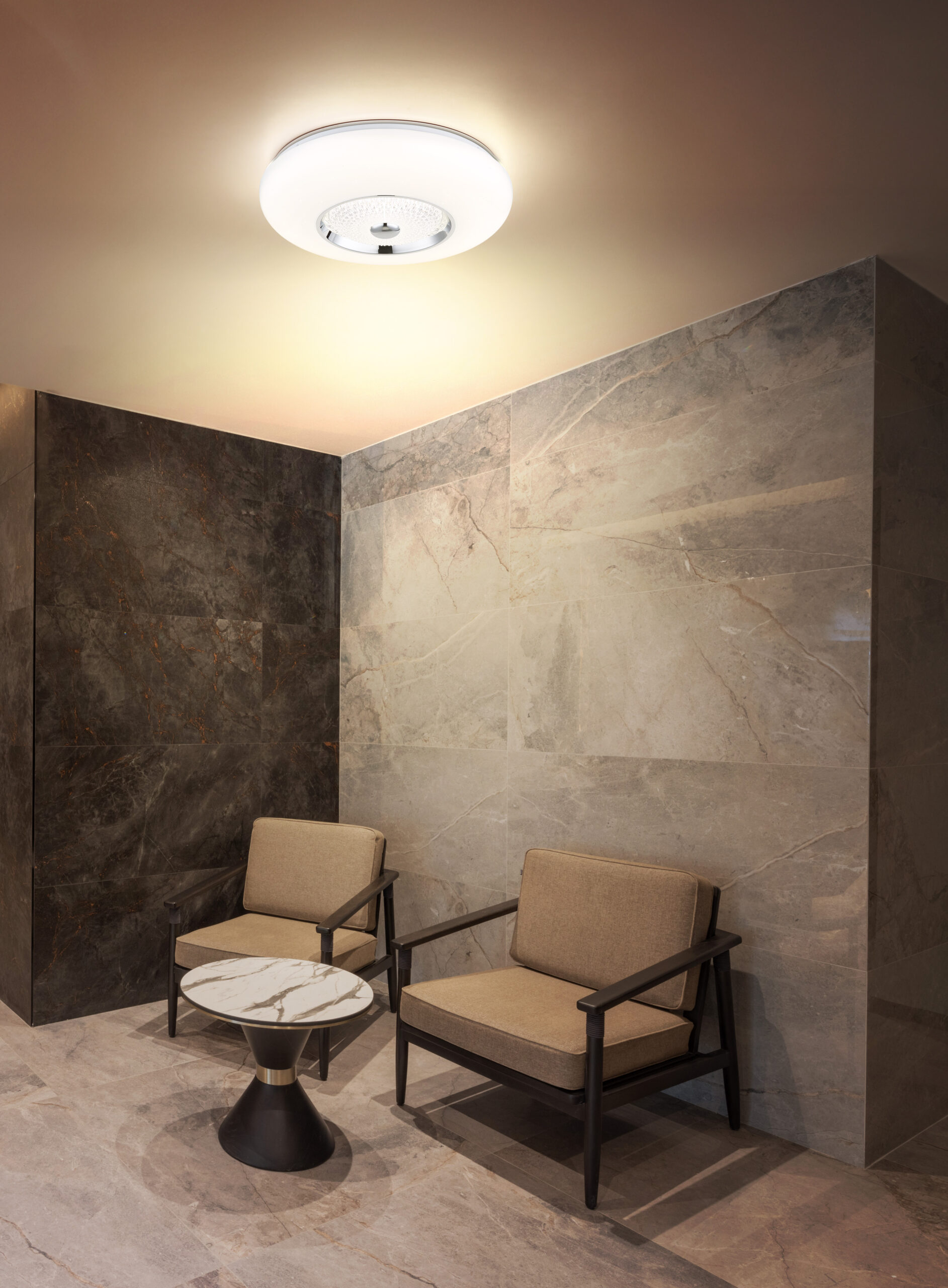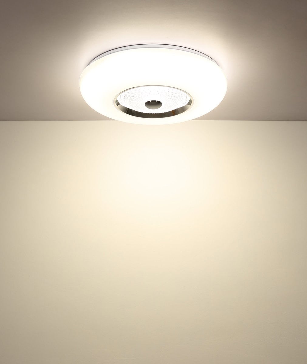 Okrugla stropna svjetiljka GRAHAM impresionira elegantnim spojem modernog dizajna i funkcionalne tehnologije rasvjete. Njegovo mat bijelo metalno tijelo dopunjeno je opalnim plastičnim sjenilom ukrašenim prozirnim akrilnim kristalima i hromiranim metalnim elementima. Ovaj rafinirani dizajn pruža elegantnu međusobnu igru svjetla, dodajući dašak sofisticiranosti svakoj prostoriji. Sa promjerom od 485 mm i svjetlosnom snagom od 2.690 lumena, GRAHAM je idealan za veće prostore kao što su dnevni ili blagovaoni. Integrirana CCT tehnologija omogućava vam da prilagodite boju svjetla od tople bijele (3000K) do dnevne svijetlo bijele (6000K), u skladu s vašim raspoloženjem. Funkcija praktične memorije pamti vašu posljednju odabranu postavku, a boje se mogu fiksirati za prilagođene akcente osvjetljenja. Ugrađena LED dioda je uključena i pruža energetsku efikasnost i dugotrajne performanse. GRAHAM je savršena plafonska lampa za elegantno, pametno osvetljenje.