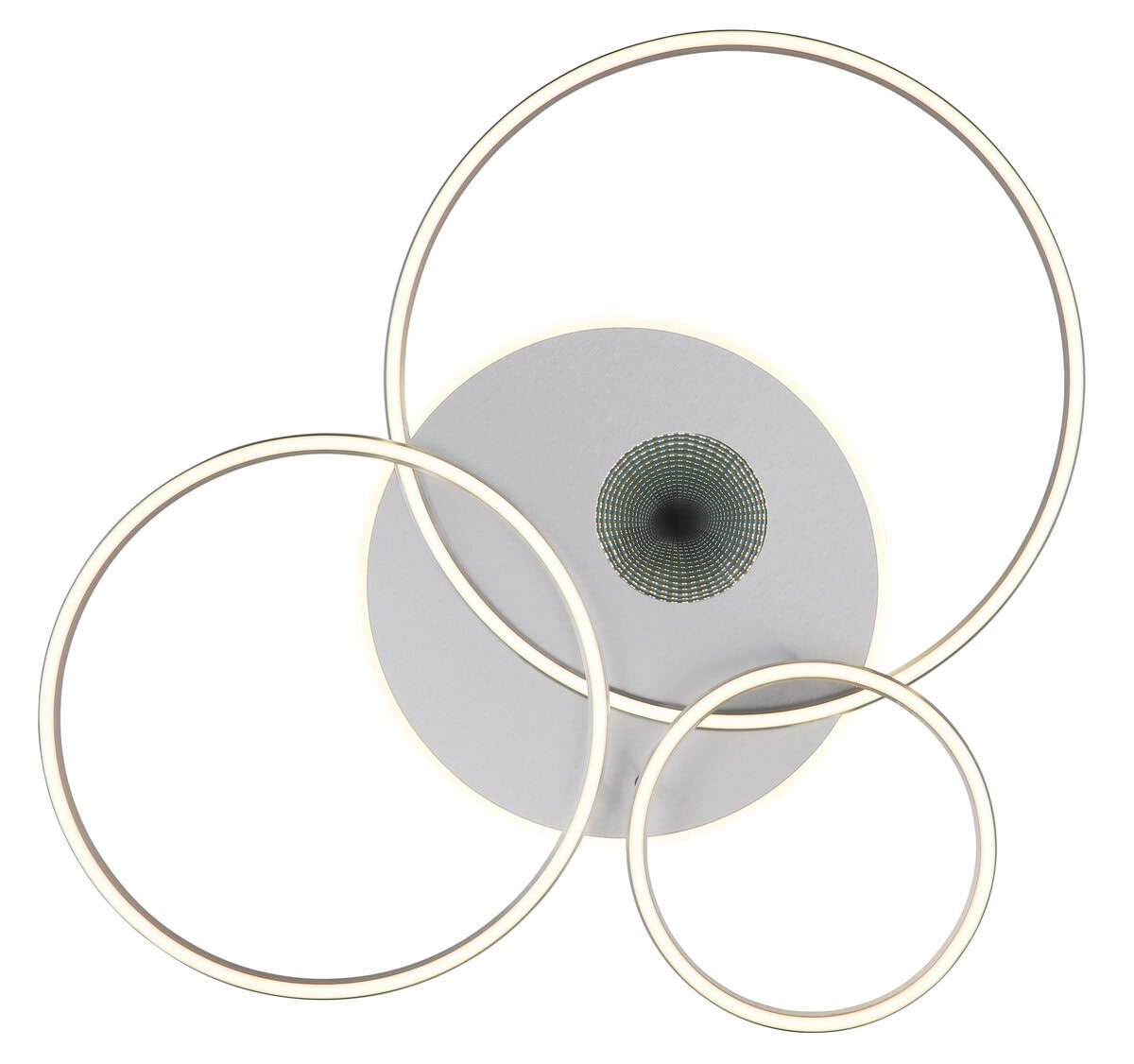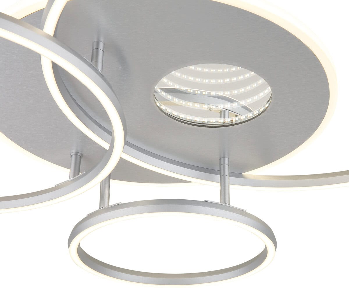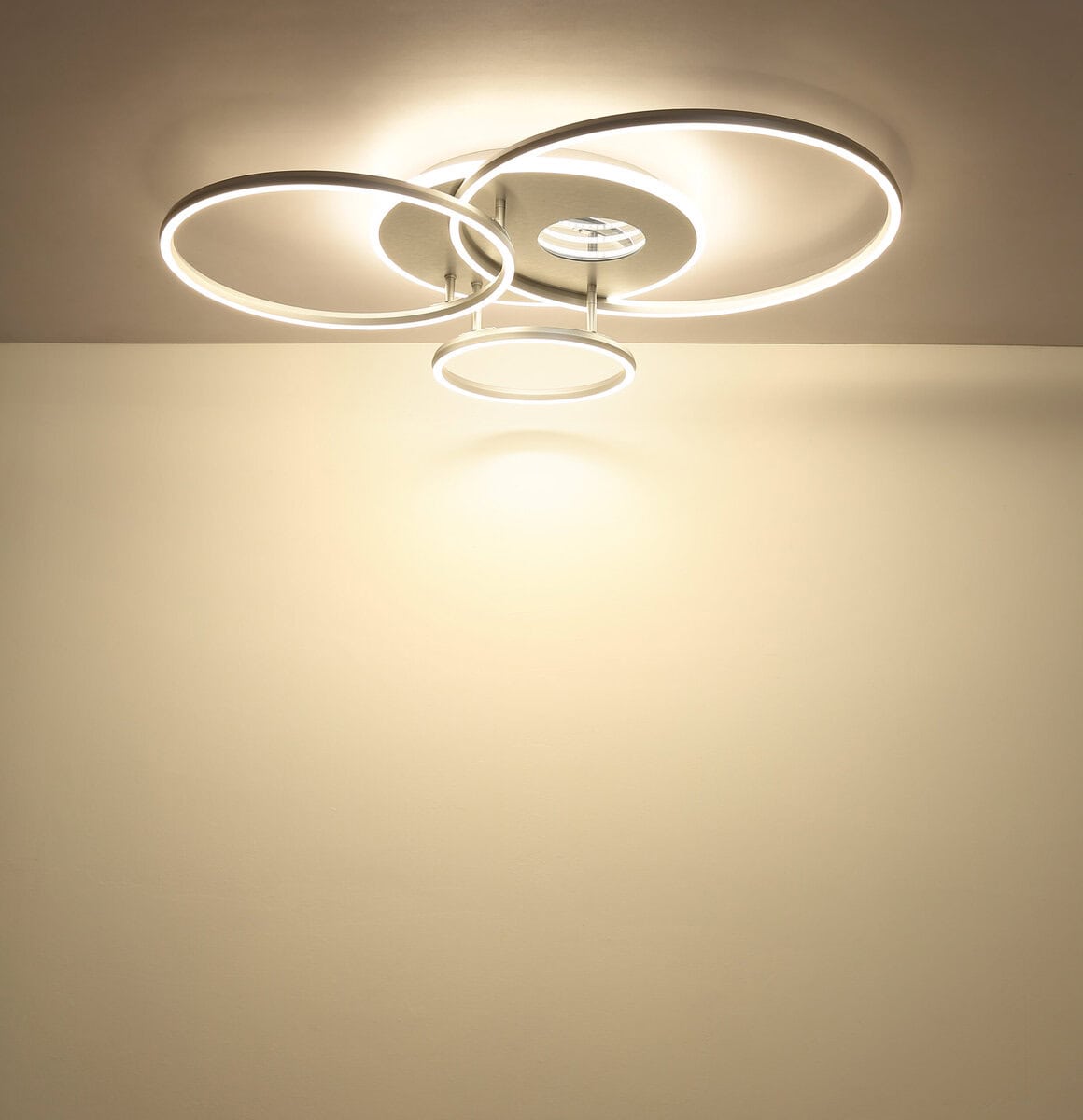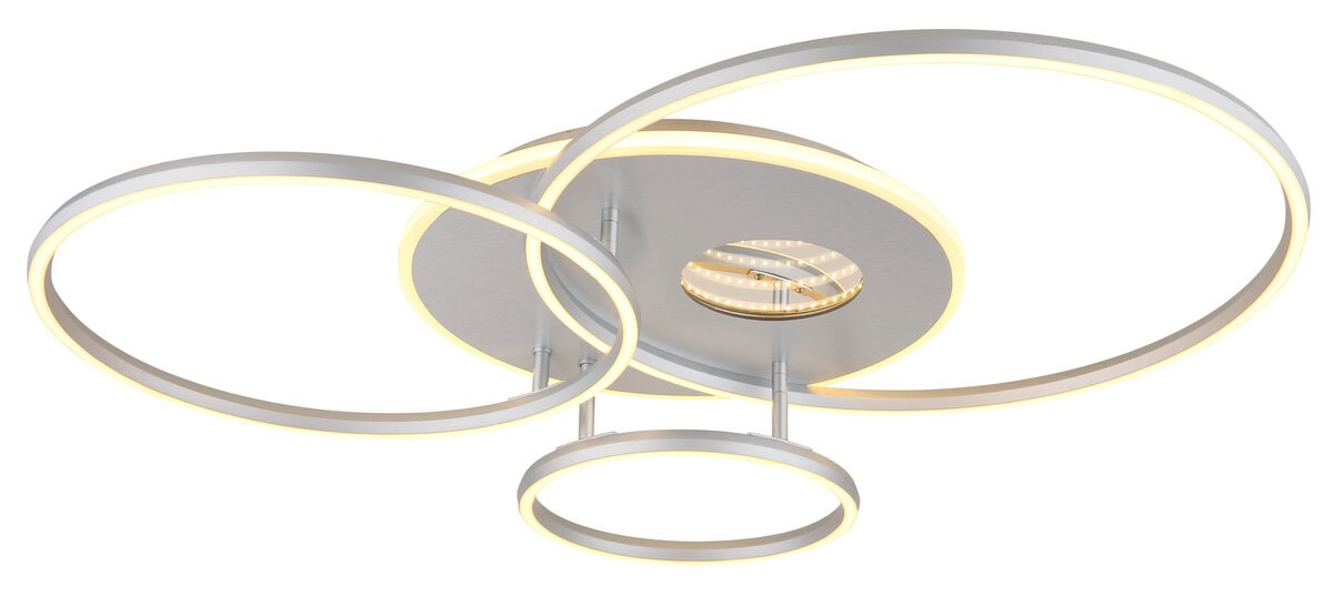 INVERTINA plafonska lampa kombinuje moderan dizajn sa inovativnom tehnologijom osvetljenja i dodaje stilske akcente svakoj prostoriji. Njegovo pravougaono tijelo od brušenog, mat srebrnog aluminija naglašava čiste linije, dok četiri ofset prstena stvaraju uzbudljiv, geometrijski izgled. Sjenilo od opal plastike i zrcalnog, sjajnog akrila stvara upečatljiv 3D efekat koji impresivno naglašava svjetlost. Sa svjetlosnom snagom od 2400 lumena, INVERTINA nudi moćnu, ali ugodnu svjetlinu koja se može individualno kontrolisati putem daljinskog upravljača – uključujući funkciju zatamnjivanja, podesivu boju svjetla (CCT od 2700 K do 6500 K), noćno svjetlo i postavke boja koje se mogu zaključati. Integrirana memorijska funkcija trajno čuva željene postavke. Savršeno za dnevne i blagovaone, hodnike ili radne prostore, ovo svjetlo nudi ne samo funkcionalnost već i izražajan dizajn. Uključuje LED za energetski efikasnu i dugotrajnu rasvjetu.
