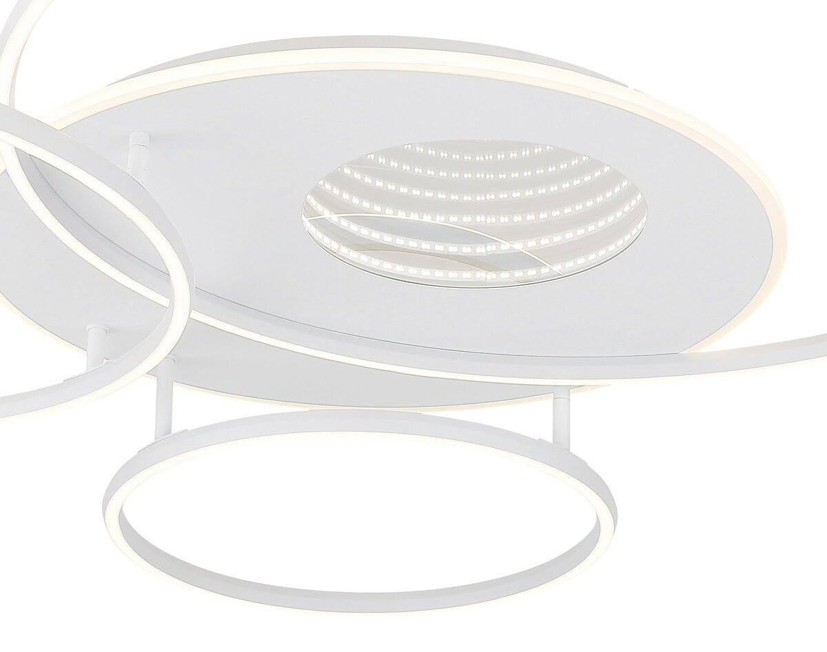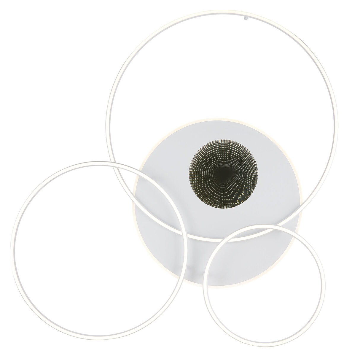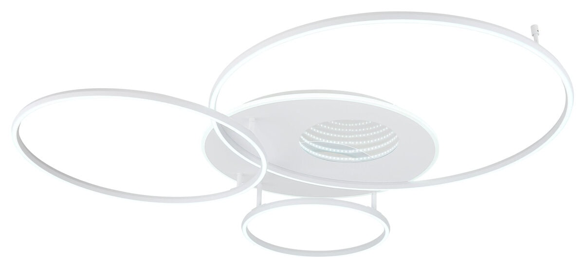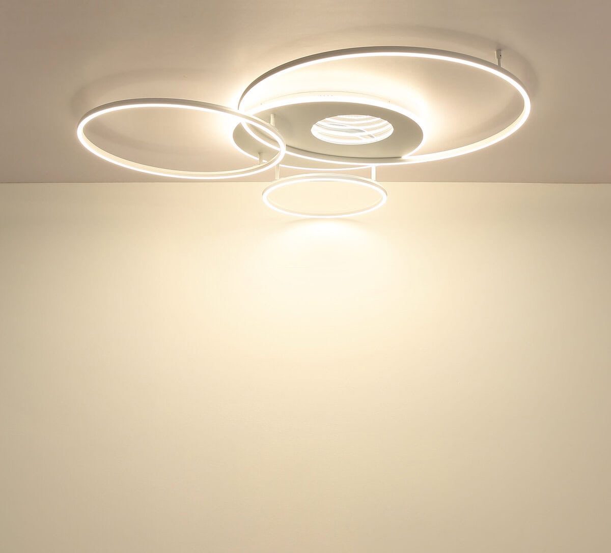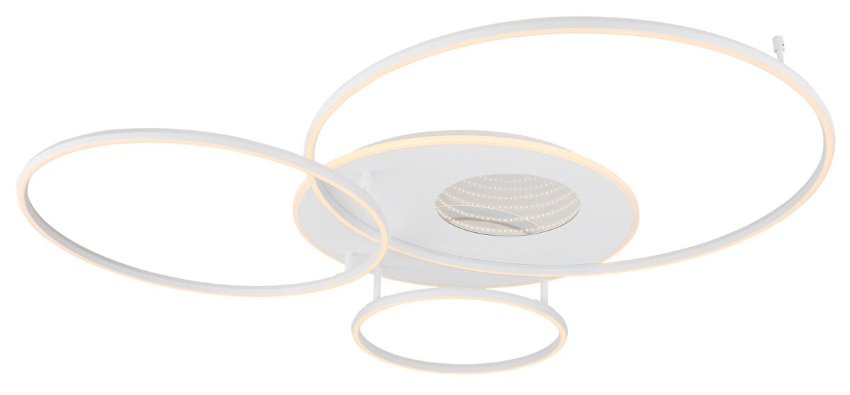 Pravougaona plafonska lampa INVERTINA impresionira svojim inovativnim dizajnom sa četiri ofsetna prstena raspoređena jedan pored drugog, stvarajući elegantan i dinamičan svetlosni efekat. Sa velikim dimenzijama od 1264 mm dužine i 1053 mm širine, idealan je za velike dnevne ili radne prostore. Kućište izrađeno od mat bijelog metala daje svjetlu moderan, ali bezvremenski izgled. Nijansa kombinuje mat bijeli aluminijum sa opal plastikom i zrcaljenim akrilom, stvarajući fascinantan 3D efekat i stilski raspoređujući svetlost. Integrisana LED sa 2945 lumena nudi beskonačno prigušivu temperaturu boje (CCT) od toplih 2700 K do hladnih 6500 K. Pomoću priloženog daljinskog upravljača, boje se mogu fiksirati, podešavati osvetljenost, aktivirati memorijska funkcija i uključiti praktično noćno svetlo. INVERTINA kombinuje tehničke inovacije sa visokokvalitetnim dizajnom — savršeno za moderne, sofisticirane životne prostore.