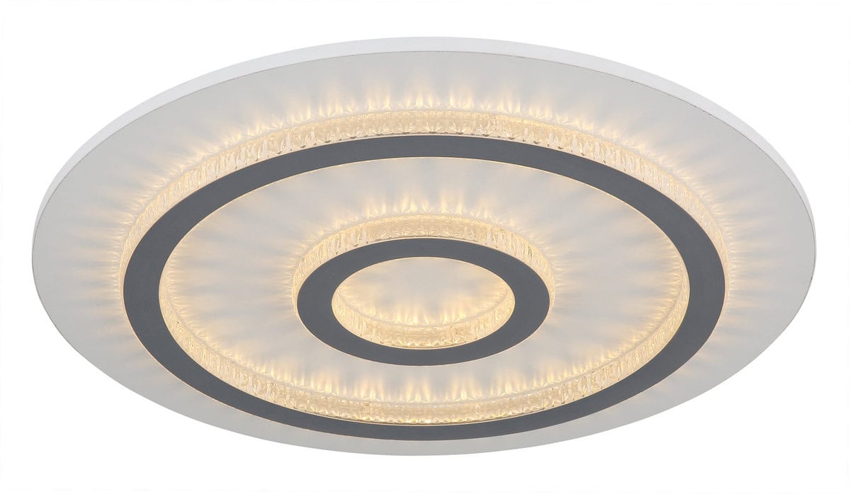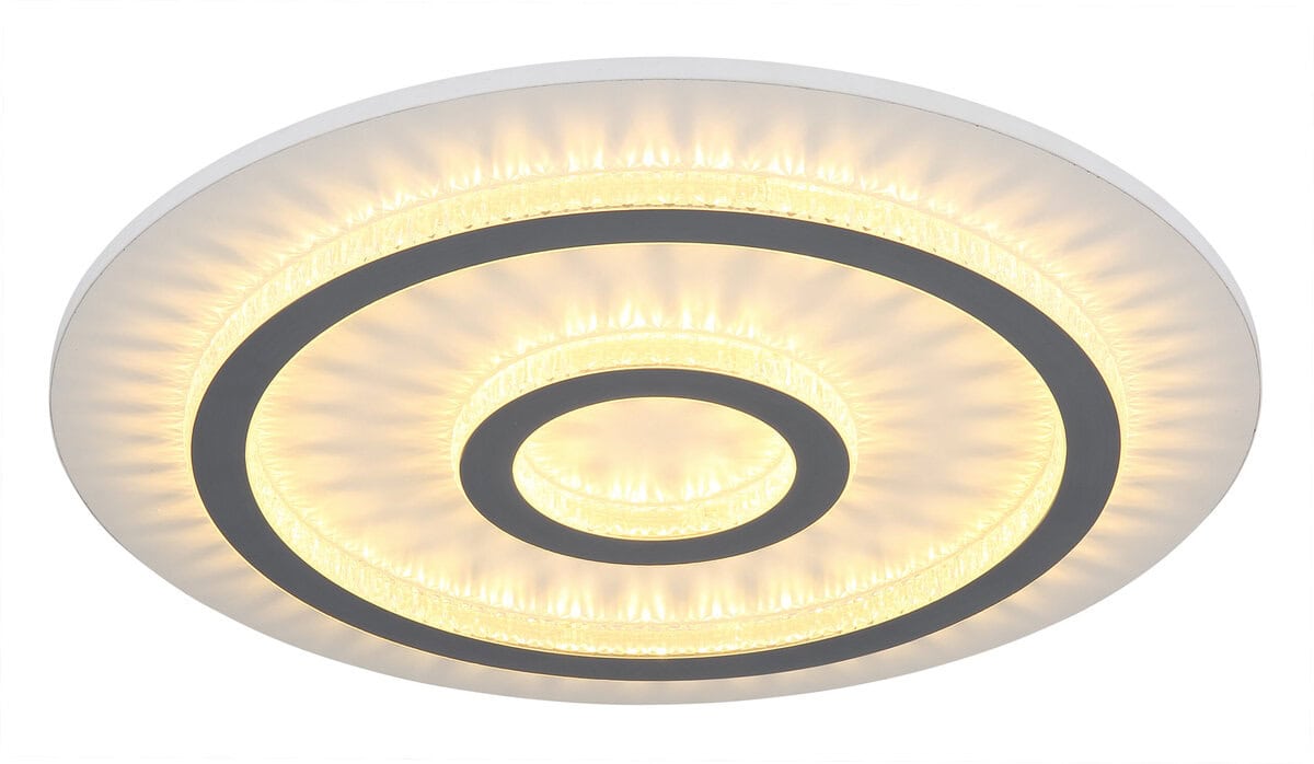 Jayden stropna svjetiljka u elegantnoj bijeloj boji donosi elegantan dizajn i modernu tehnologiju u vaš dom. Sa svojim kućištem od mat metala i plastike u bijeloj boji i sjenilom od prozirnih plastičnih kristala i svijetlosive plastike, nudi elegantnu kombinaciju estetike i funkcije. Prečnik od 450 mm čini ih idealnim za različite veličine prostorija. Integrirani LED osigurava energetski učinkovito osvjetljenje, dok funkcija zatamnjivanja i daljinski upravljač omogućavaju individualni dizajn rasvjete. CCT funkcija omogućava podešavanje temperature boje od 2700K do 6500K, tako da možete birati između toplog i hladnog svjetla ovisno o vašem raspoloženju i potrebama. Osim toga, memorijska funkcija osigurava da se željena postavka svjetla vrati svaki put kada se svjetlo uključi. Ova plafonska lampa je savršen izbor za moderno, udobno i raznovrsno osvetljenje u vašem životnom prostoru.