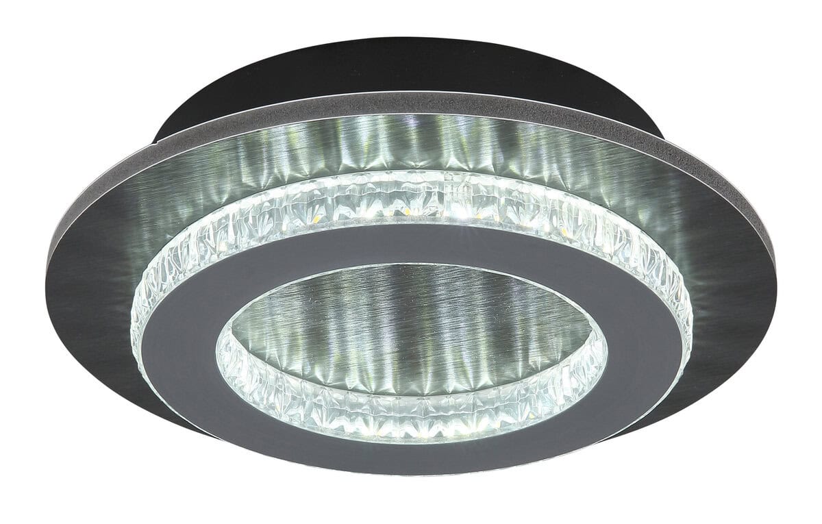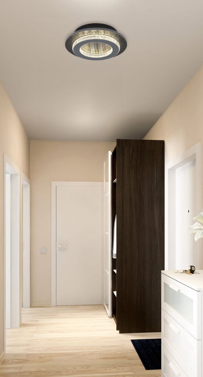Jayden plafonska lampa kombinuje moderan dizajn i raznovrsne funkcije u elegantnom, kompaktnom izvoru svetlosti. Kućište izrađeno od mat crnog metala i plastike u boji antracita daje lampi elegantan i savremen izgled. Sjenilo od prozirnih plastičnih kristala i mat sive plastike osigurava ravnomjerno i ugodno osvjetljenje. Sa prečnikom od 200 mm, lampa je idealna za male i srednje prostorije. Jayden plafonsko svjetlo se može prigušiti i omogućava individualno podešavanje svjetline. Takođe možete koristiti daljinski upravljač za podešavanje temperature boje u rasponu od 2700 K do 6500 K kako biste pronašli savršeno osvjetljenje za svako raspoloženje. Zahvaljujući praktičnoj funkciji memorije, svjetlo pamti vašu željenu postavku. Idealno za moderne stambene prostore koji nude funkcionalna i estetska rješenja rasvjete.