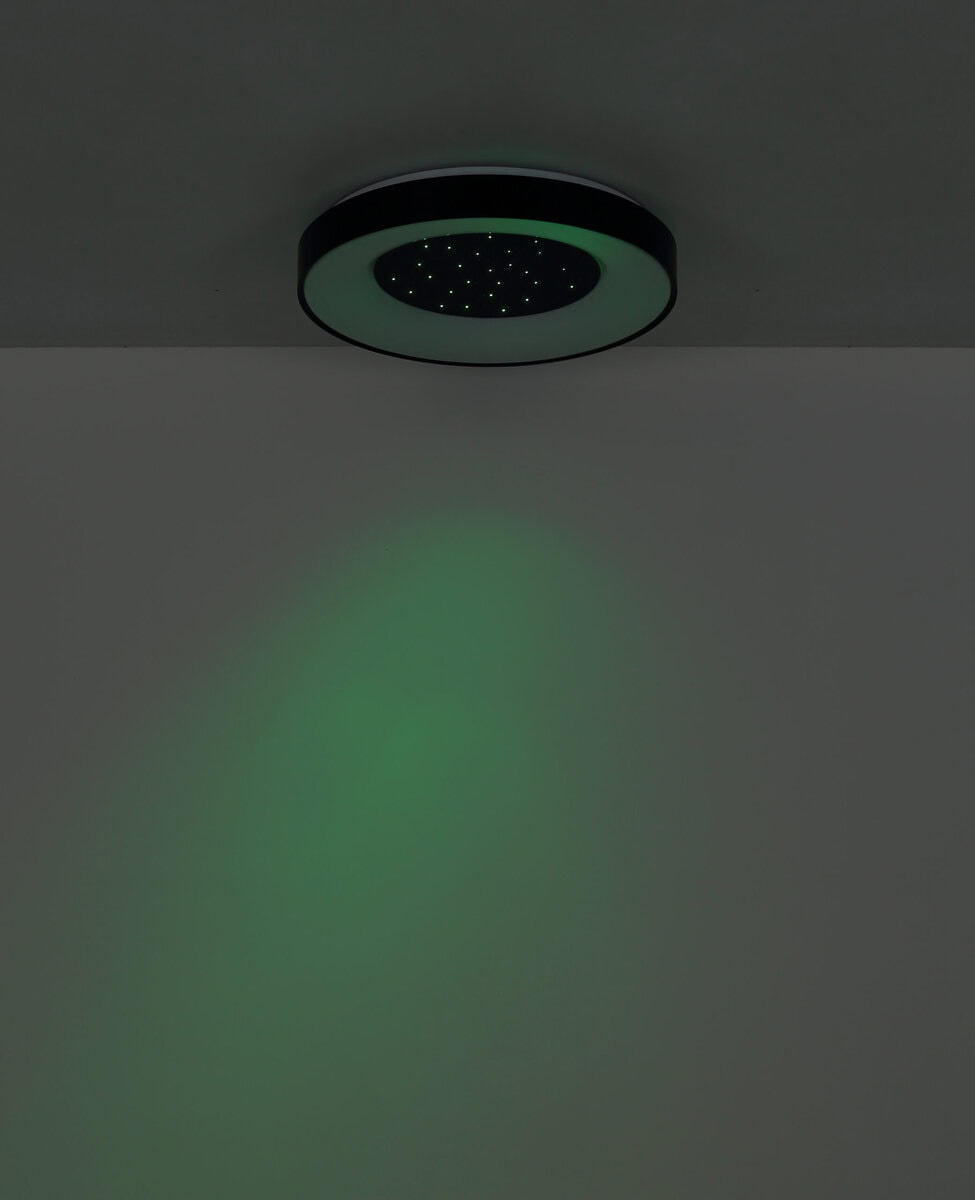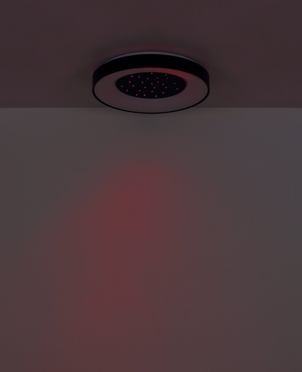 Stropna svjetiljka METAL WHITE impresionira svojim modernim dizajnom i inovativnim funkcijama. Tijelo izrađeno od bijelog mat metala elegantno se uklapa u svaki koncept prostorije, dok sjenilo od crne plastike sa opal plastikom osigurava ravnomjernu raspodjelu svjetlosti. Poseban naglasak je efekat meteora, koji je ugrađen u sredinu lampe i osigurava fascinantno svjetlosno iskustvo. Pomoću priloženog daljinskog upravljača možete lako kontrolisati svjetlo, prigušiti svjetlinu i aktivirati promjenu boje RGB kako biste promijenili boju osvjetljenja po želji. Također možete birati između tri nivoa svjetline, a memorijska funkcija pohranjuje željenu postavku. Svjetlo se može prigušiti pomoću fleksibilnog CCT-a od 2700K do 6500K, što vam omogućava da stvorite savršenu svjetlosnu atmosferu za svaku priliku. Uključuje LED za energetski efikasnu rasvjetu.