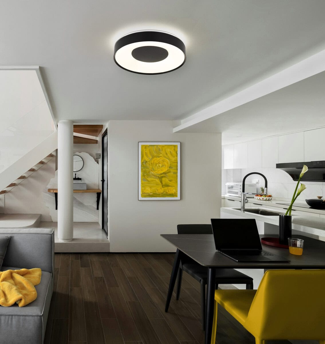 METALNO BIJELA plafonska lampa sa modernim efektom meteora nudi jedinstvenu kombinaciju elegantnog oblika i inovativne tehnologije osvetljenja. Tijelo izrađeno od bijelog mat metala daje lampi jednostavnu i savremenu estetiku. Sjenilo izrađeno od crne plastike i opal plastike osigurava meku, ravnomjernu distribuciju svjetlosti, dok efekat meteora u središnjem dijelu nudi fascinantno svjetlosno iskustvo. Uz priloženi daljinski upravljač, svjetlo se može lako kontrolisati i podesiti svjetlinu. Možete koristiti RGB promjenu boje da promijenite boju svjetla u zavisnosti od vašeg raspoloženja ili prilike. Svjetlo također nudi memorijsku funkciju koja čuva željenu postavku svjetla i može se prigušiti pomoću CCT od 2700K do 6500K. Ova lampa ne samo da pruža savršeno osvetljenje, već i impresivan vizuelni efekat u svakoj prostoriji. Uključuje LED za efikasnu upotrebu.