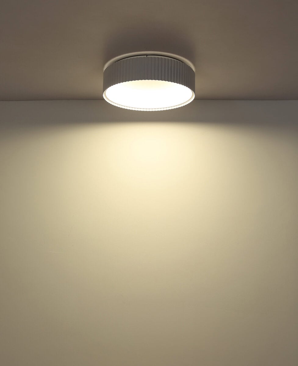 Okrugla KEMP plafonska lampa impresionira svojim elegantnim dizajnom, koji je posebno elegantan zahvaljujući talasastom metalnom prstenu u mat beloj boji. Tijelo i sjenilo izrađeni su od mat bijelog metala i savršeno se uklapaju sa opal akrilom, koji osigurava ravnomjernu raspodjelu svjetla bez odsjaja. Sa svjetlosnom snagom od 1800 lumena, svjetlo nudi jako i ugodno osvjetljenje koje je idealno za dnevni i radni prostor. Temperatura boje može se podesiti od tople bijele (2700 K) do hladno bijele (6000 K) i može se individualno fiksirati, omogućavajući vam da kreirate svjetlosno raspoloženje tačno onako kako želite. Funkcija praktične memorije pamti posljednju odabranu postavku, dodatno povećavajući jednostavnost korištenja. Uključujući modernu, energetski efikasnu LED tehnologiju, KEMP plafonska lampa kombinuje moderan dizajn sa visokom funkcionalnošću i stvara ugodnu atmosferu u svakoj prostoriji.