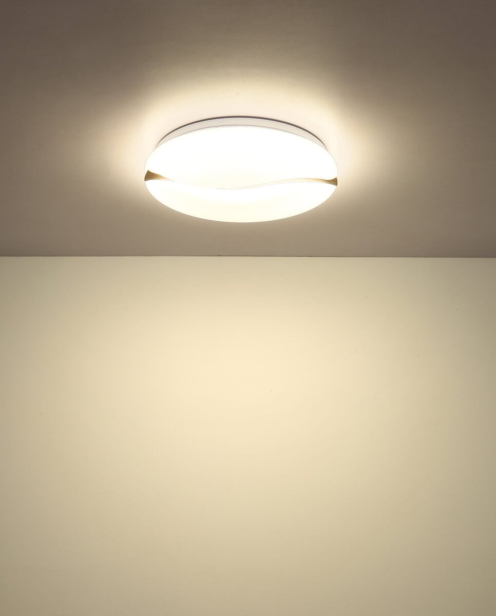 Stropna svjetiljka LETICIA – moderan dizajn sa prirodnim akcentima Stropna svjetiljka LETICIA kombinuje moderan dizajn sa prirodnim materijalima. Bijelo metalno tijelo i opal plastična nijansa osiguravaju ravnomjernu distribuciju svjetlosti, dok drvo smeđa aplikacija daje elegantan, prirodan dodir. Sa prečnikom od 390 mm, lampa je idealna za dnevne sobe, trpezarije ili hodnike. Integrisana LED tehnologija nudi impresivnu jačinu lumena od 2047 lumena, pružajući svetlo, prijatno osvetljenje. Također možete podesiti temperaturu boje od 3000K do 6000K kako biste stvorili savršenu atmosferu za svaku priliku. Sa praktičnim funkcijama kao što su memorijska funkcija i mogućnost fiksiranja boja, plafonska lampa LETICIA nudi visok nivo fleksibilnosti i udobnosti. Savršen izbor za sve koji žele spojiti funkcionalnost i estetski dizajn.